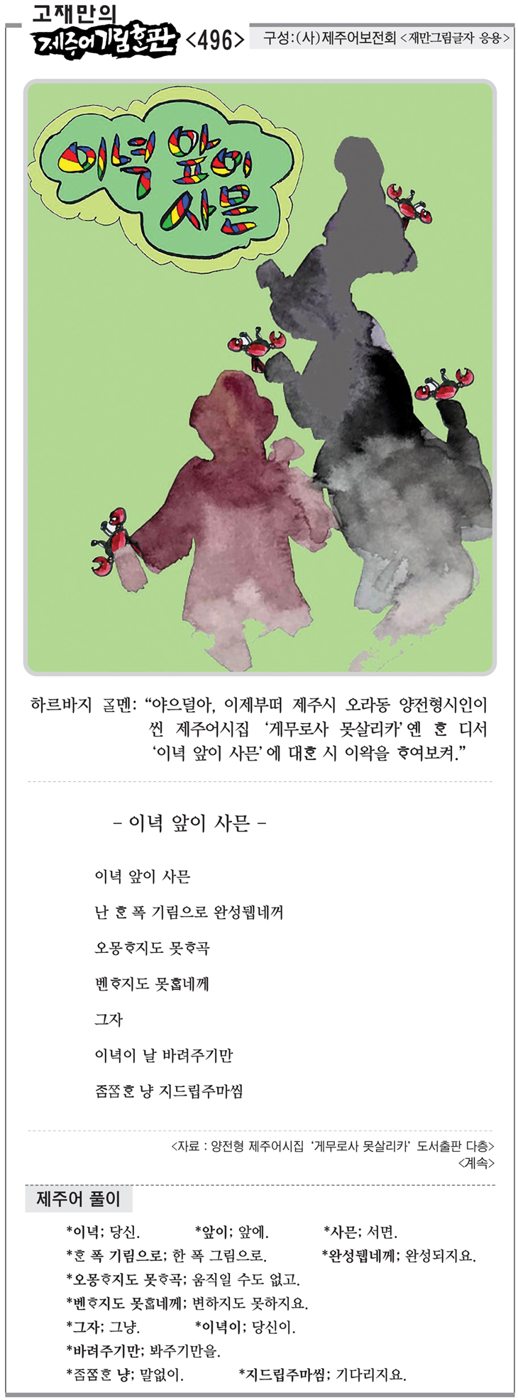 [고재만의 제주어기림혼판] 제주어 풀이(496)