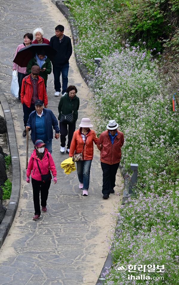 한담해안 꽃길 산책하는 어르신들