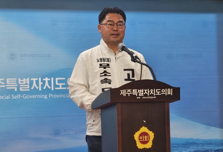 고민수 예비후보는 27일 제주도의회 도민카페에서 기자회견을 가졌다. 오소범기자