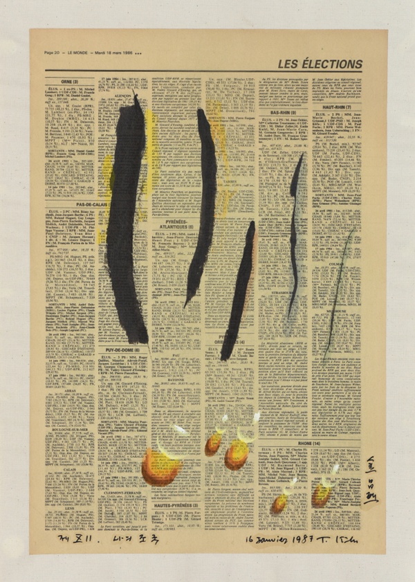 미술관 측은 "이번 전시는 '객관적이고 집합적인 시간'을 담고 있는 신문과 '주관적인 시간'의 흔적이라 할 수 있는 물방울이라는 이질적인 두 요소가 한 화면 안에서 만나면서 작품이 단순한 재현을 넘어 시간의 층위를 탐구하는 장으로 확장되는 모습을 보여준다"고 했다. 10월 18일까지.