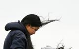 [포토] 제주 강풍에 움츠린 관광객들