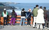 [한라일보] 10일 제주시 용담동 용두암을 찾은 관광객들이 제주의 봄바다를 바라보고 있다. 강희만기자 ■기사제보▷카카오톡 : '한라일보' 또는 '한라일보 뉴스'를 검색해 채널 추가▷전화 : 064-…