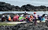 [한라일보] 11일 제주시 구좌읍 평대리 마을 어장에서 어르신들이 공동작업을 하기 전 썰물을 기다리며 담소를 나누고 있다. 강희만기자 ■기사제보▷카카오톡 : '한라일보' 또는 '한라일보 뉴스…