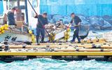 [한라일보] 13일 서귀포시 대정읍 운진항 내 가두리장에서 어민들이 방어 출하작업을 하고 있다. 강희만기자 ■기사제보▷카카오톡 : '한라일보' 또는 '한라일보 뉴스'를 검색해 채널 추가▷전화…