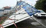 [한라일보] 제주 전역에 강풍경보가 내려진 2일 서귀포시 안덕면 산방산 인근 공사장에 설치된 안전막이 강한 바람에 못이겨 넘어져 있다. 강희만기자 ■기사제보▷카카오톡 : '한라일보' 또는 '…