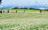 [한라일보] 19일 제주시 오라동 메밀꽃축제장에 순백의 메밀꽃이 만개해 장관을 이루고 있다. 이날 축제장을 찾은 도민·관광객들이 메밀꽃과 제주시가지를 배경으로 기념사진을 촬영하고 있다. 강…