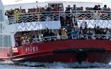 [포토] 송악산 해안 절경 감상하는 유람선 관광객들