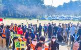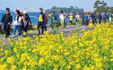 [한라일보] 꽃샘추위가 물러가고 봄기운이 완연한 지난 22일 서귀포시 제주월드컵경기장 광장에서 열린 제27회 서귀포유채꽃국제걷기대회 참가자들이 법환동 해안 유채꽃길을 걷고 있다. 강희만기…