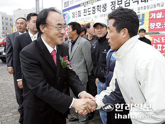 ![]() ▲27일 선거 사무소 인근에서 출정식을 가진 신영근 교육감 후보가 시민들과 악수를 나누며 지지를 호소하고 있다. /사진=강경민기자 gmkang@hallailbo.co.kr 신영근 제주특별자치도교육감 후보는 27일 선거 사무소 인근에서 출정식을 갖고 이번 선거에서의 필승을 다짐했다. 신 후보는 이날 오후 1시30분 (구)제주세무서 사거리에서 지지자들이 운집한 가운데 가진 출정식을 통해 "현재 제주교육은 위기이며, 그 위기의 본질은 교육리더십의 실종에 있다"며 "비전도 정책목표도 없이 현실에 안주한 채 표류하는 제주교육을 수수방관만 할 수 없어 비장한 각오와 결의로 이 자리에 서게 됐다"고 출마의 변을 밝혔다. 기호 1번 신영근 후보 "위기의 제주교육 바로 세울 것" 특히 신 후보는 2년6개월 동안의 제주도체육회 상임부회장 재임 시절 전국소년체전과 전국체전에서 원정사상 처음으로 2년연속 최다 메달을 일구어 내는 등 개방과 개혁의 무한경쟁시대에 대처할 수 있는 능력을 갖춘 후보임을 강조하며 소중한 한표를 자신에게 행사해 줄 것을 호소했다. 신 후보는 "'세계속의 제주를 만들어 갈 국제인 양성'이라는 정책비전을 갖고 '제2의 교육자치운동'인 '신교육 운동'을 펼쳐나가겠다"며 ▷국제자유도시를 이끌어 갈 인재양성 ▷아이들이 행복한 교육환경조성 ▷함께하는 교육행정이라는 세가지 목표를 반드시 구현토록 하겠다고도 강조했다. 신 후보는 공약으로 ▷제주교육에 대한 경영컨설팅제 도입 ▷영어회화 인증제 도입 ▷도서벽지 학생 급식비 전액지원 ▷맞춤형 급식시스템 구축 ▷완전교육복지도시를 위한 교육2020비전 마련 등을 제시했다. 한편 이날 출정식에는 김우남 국회의원, 신구범 전 제주도지사, 김영준 전 제주시부시장 등이 참석해 눈길을 끌었다. <저작권자 © 한라일보 (http://www.ihalla.com) 무단전재 및 수집·재배포 금지 > |
