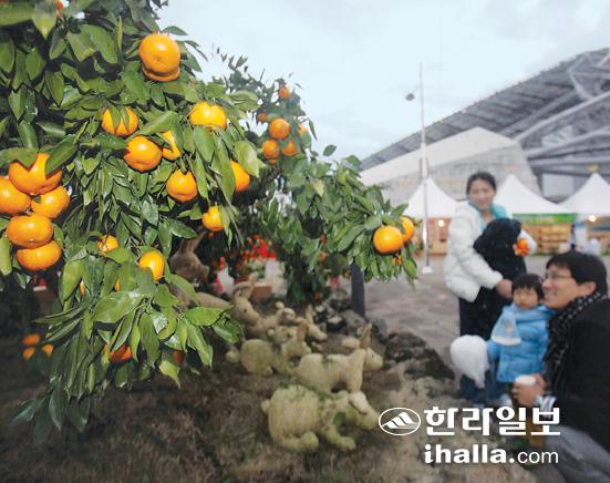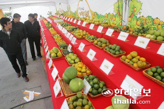 ![]() ▲희망 2008 감귤축제가 서귀포시 월드컵경기장에서 개막된 가운데 제주감귤의 역사와 품종을 한눈에 볼 수 있는 품종전시회도 열리고 있어 관람객들의 눈길을 끌고 있다. /사진=김명선기자 [제주감귤 이야기] 삼국시대 주요 진상품… 조선시대 관리횡포로 수난 '대학나무' 별칭 1980년대 제주소득 전국 1위 '효자' 아주 오랜 옛날 귤은 일반백성들이 맛을 보기가 힘들 정도의 귀한 과일로 삼국시대에는 임금에게 바치는 주요 진상품이었고 조선시대에는 감귤을 공납용으로 걷어가기도 했다. 공납용으로 걷어가는 관리들의 횡포를 피하기 위해 귤나무에 구멍을 뚫어서 후추를 넣어 말려 죽이기도 했고 귤나무 묘목이 발견되면 아예 뽑아버리기도 했다고 한다. 한때 감귤나무 한 그루의 수입으로 자식을 대학에 보낸다고 하여 대학나무로 불리기도 했고 지난 1980년 제주도의 소득은 우리나라에서 1위를 차지하기도 했다. 하지만 한미 FTA 등 시장개방 확대 등으로 제주감귤 산업은 갈수록 위기에 처하고 있다. '희망 2008 국민비타민 제주감귤축제'를 맞아 제주감귤의 유래와 제주감귤의 효능 등을 제주감귤박물관의 도움을 받아 소개한다. ▶제주감귤의 유래=탐라(제주도)와 한반도와의 관계기록은 삼한시대에 마한(기원전 3세기~기원 후 4세기)과의 왕래로서 비롯하며 마한이 망한 다음 백제에 복속하였다. 일본서기에 의하면 수인제의 명에 의해 서기 70년에 상세국에서 비시향과를 가져왔다고 하였는데 여기서 말하는 비시향과는 감귤의 한 종류가 분명하며 상세국은 제주도를 지칭한 것이 아닌가 하고 추측하는 사람도 있다. 고려사에 의하면 백제 문주왕 2년 (서기 476년) 4월 탐라에서 방물을 헌상하였다는 기록이 있다. 고려시대에 와서는 고려태조 천수 8년 (서기 925년) 겨울 11월에 "탐라에서 방물을 바치다"를 시작으로 "방물을 바쳤다" "토물을 바쳤다" 하는 기록이 계속되는데 그 방물과 토물의 내용은 무엇이었는가. 교역 물품이나 방물에 감귤이 포함되었다는 분명한 기록은 없지만 정황으로 봐서 감귤이 포함되었을 것으로 추측된다. 고려사 세가권7의 기록에 의하면 문종(文宗) 6년 (1052년) 3월에 "탐라에서 세공하는 귤자의 수량을 일백포로 개정 결정한다"라고 되어있는 것으로 보아 그 이전부터 제주도의 감귤이 세공으로 바쳐졌음을 알 수 있다. ▶감귤의 효능=감귤은 알칼리성 식품이고 신진대사를 원활히 하며 피부와 점막을 튼튼히 하여 감기예방 효과가 있다. 비타민 C의 작용으로 피부미용과 피로회복에 좋으며 칼슘의 흡수를 도와준다. 비타민P(헤스페리딘)는 모세혈관에 대해 투과성의 증가를 억제하여 동맥경화, 고혈압예방에 좋다. 감귤은 알맹이에서 껍질까지 모두 이용하며 귤껍질 말린 것을 진피라고 하는데 한약제 및 목욕물에 담가 향긋한 입욕제로 이용하면 좋다. ▶동의보감(탕액편)에 나타난 감귤의 효능=귤피(귤껍질)은 성질이 따뜻하며 맛은 맵고 쓰며 독이 없다. 귤육(귤의 속살)은 성질이 차고 맛은 달며 시다. 소갈증을 멎게 하고 음식맛을 나게 하며 소화를 잘 시킨다. 귤핵(귤씨)은 요통, 방광기와 신장이 찬 것을 치료한다. 귤씨를 닦아 가루 내어 술에 타 먹는다고 기록하고 있다. ![]() ▲23일까지 열리는 희망 2008 감귤축제가 서귀포시 월드컵경기장에서 개막된 가운데 20일 오후 축제장을 찾은 한 가족이 노랗게 익은 감귤을 보며 즐거운 한때를 보내고 있다. /사진=한라일보DB "건강한 먹거리 선사합니다" 쇼핑호스트 선발대회·요리경연 등 마련 '2008 제주감귤축제' 월드컵 경기장 광장 일원서 열려 깊어가는 가을주말, 국민비타민 축제의 현장으로 떠나보자. '2008 제주감귤축제'가 '희망 한가득-상생 한마음'이라는 주제로 20일부터 23일까지 서귀포 제주월드컵경기장 광장 일원에서 열리고 있다. 제주감귤의 우수성을 대내외에 알려 소비를 촉진하고 감귤 생산농업인에게 생산의욕과 자긍심 고취하기 위해 (사)제주감귤협의회가 주관하는 이번 감귤축제는'환영, 희망, 축제, 상생'이라는 테마로 다채로운 볼거리와 체험 프로그램이 진행되고 있다. 20일 개막식 및 축하공연을 시작으로 22일에는 새콤달콤 감귤에 대한 이야기를 재미있게 설명하는 멋진 쇼핑호스트를 선발하는 '감귤쇼핑호스트 선발대회'(12:00~14:00)와 다양한 감귤요리 실력을 뽐내는 '감귤요리경연대회'(15:00~17:00), 도민들의 끼를 분출하는 '제주감귤스타콘테스트'(17:40~19:50)가 열린다. 이어 23일에는 도내 감귤농가들이 참여하는'농업인 조합원 한마당(10:00~16:00)'과 '폐막식및 소망풍선날리기(16:00~16:30)'가 진행된다. 또 이번 행사기간내 월드컵 경기장 옆 감귤테마공원에서 싱싱한 감귤을 따고 상큼한 맛도 느낄 수 있는 감귤따기체험농장을 운영한다. 체험농장 입장료는 2천원이며 자신이 직접 딴 감귤중 2㎏를 공짜로 가져갈 수 있으며 저렴한 가격에 감귤을 구입할 수도 있다. 또 도자기, 칠보, 한지공예 체험과 토피어리 제작 체험도 할 수 있다. 이와함께 도내 재배되고 있는 감귤품종 1백50여종, 세계 감귤품종 30여종,우수감귤 경연대회 출품작 등을 볼수 있는 감귤품종 전시관이 행사기간내내 운영되고 ▷농업신기술· 검역· 
