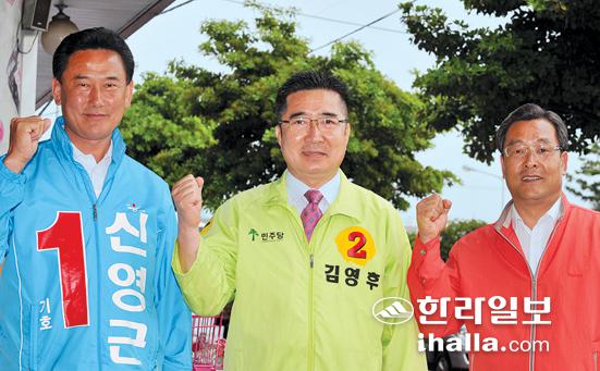 ![]() ▲제주도의회 8선거구인 화북동 지역구에 출마한 후보자들. 왼쪽부터 신영근, 김영후, 오태권 후보. /사진=강경민기자 세 후보 간판바꿔 4년만에 재대결 "지역현안 해결 서로 자신" 각축전 제8선거구(화북동)는 현역인 김병립 부의장이 불출마로 일찌감치 새로운 주인공을 찾게 된 선거구. 4년전 선거에서는 김 부의장이 열린우리당으로 출마한 가운데 한나라당은 오태권 후보가, 민주당 김영후 후보, 무소속으로 신영근 후보가 또다른 무소속 후보 2명 등 모두 6명이 나서 경쟁했다. 이번 선거에서도 당시 후보중 3명이 '간판'을 바꿔달고 재격돌하게 됐다. 한나라당 신영근(48), 민주당 김영후(59), 무소속 오태권(51) 후보로 재편된 것이다. 4년전에는 오 후보가 한나라당 주자로 낙점받으면서 신 후보가 탈당, 무소속으로 출마했다. 이번에는 오 후보가 신 후보 공천에 반발해 당을 나오는 정반대 현상이 나타났다. 세 후보 모두 화북공업단지와 화북문화벨트 조성 등을 공약으로 내걸었다. 제7대 제주시의원을 지낸 신 후보는 제주항 외항사업 국책사업 전환과 공업지역 환경개선, 역사문화자원 관광산업화 등을 대표 공약을 내걸었다. 화북주공아파트 단지의 문화복지시책확대와 인재육성사업, 상업지역 개발도 약속했다. 신 후보는 "'토박이'이고 지역에서 연합청년회장 2대, 제주시의원 4년, 주민자치위원장 2차례를 역임했다"면서 "이 지역의 실상과 문제점, 주민들의 생각들을 잘 파악하고 있고, 해결할 방안도 잘 알고 있다"고 당선을 자신한다. 민주당 김 후보는 월남참전유공자 제주도연합회장과 농업회사 제우의 대표이기도 하다. 화북공업단지 문제 해결과 문화유적지와 연계한 명품올레 등 화북문화벨트 조성, 고부가가치 창출을 위한 단지조성 등을 대표 공약으로 꼽았다. 김 후보는 "고교 재학중 월남전에 참전했고, 과감한 결단을 내리고 헤쳐 나가는 강인한 추진력을 소유하고 있다"면서 "농업회사 CEO 등을 통해 능력이 입증돼 지역에 무엇이 필요한지 연구했다"고 당선의 당위성을 피력했다. 무소속 오 후보는 지역을 위해 필요한 일이 무엇인지를 알고 있다며 첫 입성을 장담하고 있다. 화북공업단지를 준주거지역으로 용도변경하고, 공업단지 이설 및 새로운 상권을 형성해 화북경제 발전에 이바지하겠다는 포부를 밝혔다. 오 후보는 "건설, 사회문화, 체육관련 단체장을 역임하면서 풍부한 경험을 갖고 있다"며 "공업단지와 주거환경이 조화를 이룰 수 있는 '건설'이 필요하다. 화북의 발전에 반드시 필요한 '건설'을 알고 있는 후보"라고 자부하고 있다. <저작권자 © 한라일보 (http://www.ihalla.com) 무단전재 및 수집·재배포 금지 > |