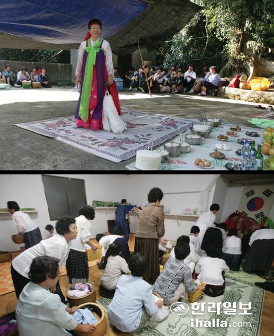 ![]() ▲백중(음력 7월 15일)을 앞두고 도내 본향당에서는 마불림제가 열린다. 장마 기운을 날려 보내고 풍어와 풍농을 기원하는 제주의 여성들이 본향당을 찾아 정성스레 준비한 제물을 올리고 제를 지낸다. 김명선기자 백중 앞두고 제주 섬 본향당서 마불림제 열려 장마기운 보내고 풍요기원하는 단골 모여들어 음력 7월 중순 제주의 대지에는 아직도 뜨거운 해가 작렬한다. 백중(음력 7월 15일)을 앞두고 도내 본향당에서는 마불림제가 열린다. 마불림제는 곡식의 풍요를 기원하는 일기 조절 성격의 무속의례이다. 마불림제는 신과세제, 영등제, 시만국대제와 더불어 당굿의 4대 제일(祭日) 가운데 하나이다. 대개 음력 7월 13~15일쯤에 각 마을마다 장마 기운을 날려 보내고 곡식의 풍요를 기원하기 위해 행하였다. 그러나 현재는 많이 사라지고 있는 상황이다. 일반적으로 마불림의 '마'는 장마(霖)와 곰팡이라는 뜻을 가지고 있다. '불림'은 바람에 날려 보내버린다는 말이다. 따라서 장마 기운을 날려 보내고 조 농사 등 곡식의 풍요를 기원하는 주술적 의미를 내포하고 있다. 또한 '마불림'은 '장마풀림' , '장마가 갬'이라는 말도 된다. 이 시기에 풋감을 따서 갈옷을 만드는 것으로 보아도 '마를 햇볕에 말리는 건조의례'가 마불림제의 세시에 들어맞는다. ![]() 한편 우마증식의 성격은 '마'를 말(馬)로 보고 '불림'을 증식의 의미로 파악하는 것이다. 이는 마불림제의 시기가 백중제의 시기와 겹쳐서 행해지는 경우가 있어 두 의례에 대한 인식이 중첩된 것으로 여겨진다. 마불림제의 제일(祭日)은 보통 세 가지로 분류할 수 있다. 첫째는 송당 본향당 당신계열로 7월 13일 또는 14일경에 지내는데, 백중제와 겸한다. 백중제는 우마번성을 기원하는 목축 의례로 '테우리코사', '쉐멩질'이라 하여 마소를 방목하는 목동들의 명절과 겸하고 있다. 당굿에서는 산신 놀이를 하는 등 마불림보다는 오히려 백중제가 더 비중이 크다. 둘째는 중문 하로산계열로 8월 추석에 지내는데, 당굿을 하기 전에 제단의 궤문을 열고 옷을 꺼내어 볕에 말리기도 하지만 가을 수확의 풍등을 기원하는 추수감사제를 겸하고 있다. 셋째는 토산당 당신계열로 6월 17일 또는 18일에 지내는데, 대제일(大祭日)이 6월과 11월 두 번 있으며, 그 이외에는 부정기(不定期) 제일로 이렛날이나 여드렛날 생기에 맞춰가기 때문에, 6월의 당제는 '마불림제'인 동시에 산육치병의 굿과 풍농 굿을 겸한다.(제주도 무속연구) 당굿기록팀은 최근 서귀포시 수산리와 제주시 월정리에서 열린 마불림제를 찾아 생생한 현장을 기록했다. 본향당에서 열린 풍어와 풍농을 기원하고 가족의 무사안녕을 기원하는 제주의 여성의 모습을 생생하게 사진으로 담아냈다. ![]() 제주에서 백중에 관한 설화가 전해지고 있다. '남국의 민속(진성기)'에 소개되고 있는 이 설화에 의하면 백중은 농신(農神)으로 상정되고 있다. 그 내용은 "제주도의 목동이 곡식과 가축을 지키려고 옥황상제의 명을 어겼는데, 이로 인해 노여움을 받아 자결했다. 그 후 농민들이 그가 죽은 날인 음력 7월 14일을 백중일이라 하여 제사를 지내 그의 영혼을 위로했다"는 설이 전해지고 있다. <저작권자 © 한라일보 (http://www.ihalla.com) 무단전재 및 수집·재배포 금지 > |