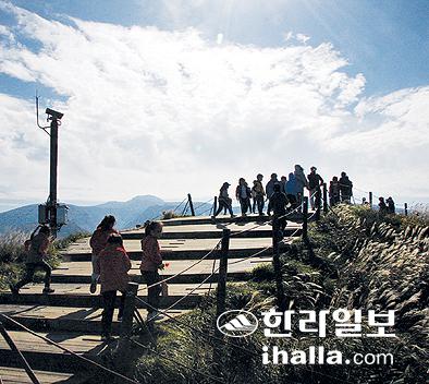 ![]() ▲한라산 탐방로의 하나인 어리목 광장에서 출발하는 어승생악에도 가을빛이 내려앉아 많은 국내외 관광객들이 깊어가는 가을 정취를 만끽하고 있다. 문미숙기자 등반로 왕복 2.6km로 짧고 경사도 완만해 부담 없어 정상에 올라서면 제주시 전경 파노라마처럼 '한눈에' 절경 인근엔 일본군 동굴진지… 아픈 기억의 역사도 가을이 절정으로 치닫고 있다. 10월 16일 시작된 한라산 단풍은 29일 절정을 이루면서 산 전체가 온통 가을빛이다. 그 고운 풍경을 놓칠새라 한라산 등반로마다 노랗고 붉은 단풍색을 빼닮은 차림의 도민과 관광객 물결이다. 단풍 속에서 일상에 지친 몸과 마음을 잠시 내려놓기 위해서리라. 하지만 힘겹게 등산을 해야 가을에 흠뻑 취할 수 있는 것만은 아니다. 그래서 가족이나 친구끼리 큰 부담없이 가을을 즐길 곳이 없을까 생각하다 떠올린 곳이 바로 '어승생악'이다. 등반로가 왕복 2.6㎞로 짧고, 완만한 오르막이라 부담없이 가을을 만끽하기에 좋을 듯 해서다. 어승생악은 한라산을 오르는 등반로의 하나인 어리목광장 바로 북쪽에 위치한 높이 1169m의 오름이다. 화산이 폭발할 때 분출한 분석이 화구 주변에 원추형태로 쌓인 소화산체다. 어승생악 등반로 들머리는 어리목광장 안에 있는 한라산 탐방안내소 바로 옆이다. 제주시에서 어리목광장까지는 1100도로를 타고 자동차로 30분정도 걸린다. 제주시외버스터미널에서 출발하는 버스를 타면 어리목광장 입구까지 40분 남짓이면 닿는다. 어승생악은 해발 1000m가 넘는 오름이지만 출발점인 어리목광장의 해발고도가 970m쯤 되는 점을 감안하면 오름의 높이가 어느 정도인지 짐작할 수 있다. 등반로는 초입에서부터 나무계단으로 잘 정비돼 있다. 온대활엽수림이 울창한 등산로 주변은 서어나무들이 극상림의 숲그늘을 만들고 있다. 그리고 한라산 등반로만큼은 아니지만 붉게 물든 단풍나무들을 곳곳에서 만나게 된다. 그 고운 빛을 놓칠새라 곳곳에서 사진찍기 바쁘다. ![]() ▲어승생악 정상에 서면 한라산 백록담 정상에서부터 윗세오름, 사제비동산, Y계곡 등 한라산 능선자락을 한 눈에 품을 수 있다. 몸만 시원한 게 아니다. 시야도 뻥 뚫린다. 살짝 흐린 날씨지만 북쪽으로는 신제주에서 구제주까지 제주시 전경이 파노라마처럼 눈앞에 펼쳐진다. 바다와 어우러진 도두봉에서 민오름, 사라봉, 별도봉, 원당봉은 물론이고 제주공항에서 비행기가 뜨고 내리는 모습도 보인다. 제주시내를 시원하게 감상할 수 있도록 전망대엔 망원경이 설치돼 있다. 마침 가을 소풍을 나온 초등학생들은 망원경 앞에 줄지어서 야단법석이다. "와! 정말 신기하네. 우리집 찾았다. 학교도 찾아볼까?" 하는 말에 옆에 있던 너 댓 명의 아이들은 "정말?"이라며 서로 보겠노라고앞에 선 친구를 재촉한다. ![]() 정상에서 북쪽으로 시선을 돌리면 또다른 웅장한 풍경이 기다리고 있다. 가까이는 작은 두레왓과 Y계곡, 사제비동산에서부터 뒤쪽으로 한라산 백록담 정상과 큰두레왓, 윗세오름, 만세동산까지 한라산 능선과 굽이굽이 계곡이 신비롭게 펼쳐진다. 한동안 어승생악 정상에서 주변 경치에 빠져들었다. 아무 생각없이 머리를 잠시 비워내며 힐링하는 사이 좋은 계절을 만끽하려는 등반객들이 쉼없이 밀려들어 북적인다. 다음을 기약하며 내려가는 발걸음은 역시나 가볍다. 올라가는 길에선 놓쳤던 주변 풍경을 살피는 여유까지 생겨난다. ![]() <저작권자 © 한라일보 (http://www.ihalla.com) 무단전재 및 수집·재배포 금지 > |