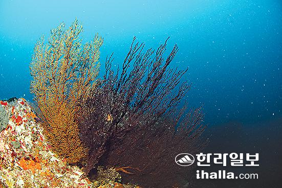 ![]() 제주에서 주로 서식하는 난류성 어류인 자리돔이 독도에서도 산란하는 사실은 지난 2012년 국립수산과학원 독도수산연구센터의 발표에 의해서 공개됐다. 사진은 서귀포시 서건도 자리돔떼. 600년 전에도 발견된 열대바다 '대모거북' 제주바다 아열대성 어류 전체의 과반 차지 최근 제주도 바다는 아열대성 어류가 전체 어류의 51%를 차지할 만큼 생태지도가 급격히 바뀌고 있다. 열대바다에나 서식하는 것으로 알려진 어류가 발견되는가 하면 우리나라에서는 제주가 북방한계선으로 여겨졌던 어류가 독도까지 생활권을 넓히고 있다. 해양생태계의 변화상이 곳곳에서 목격되고 있다. # 조선왕조실록의 '대모거북' 지난 22일 제주시 구좌읍 하도리 포구에서 멸종위기에 처한 '대모거북'이 발견됐다. 이 거북은 하도리 바다에서 해양생태계를 조사하던 제주환경운동연합·제주야생동물연구센터·곶자왈사람들로 이뤄진 조사단에게 처음 목격됐다. 조사단은 발견된 거북의 형태와 크기 등을 토대로 자료를 검색한 결과 우리나라에서는 발견된 기록을 거의 찾아볼 수 없는 '대모거북'인 것으로 확인했다. 인도양과 태평양 열대바다에 사는 대모거북은 현대 동물분류학상 한국산 기록이 없다. 몸길이만 50㎝에 달하는 이 대모거북은 바다로 돌아갔지만 어떻게 해서 제주 바다에 출현했는지는 알 길이 없다. 그렇다고 이 대모거북의 출현이 기후변화로 인한 제주바다의 생태계 변화상을 알려주는 증거라고 단정할 수도 없다. 조선 성종 때인 1486년 편찬한 지리서인 '동국여지승람'과 조선 후기 실학자 서유구가 쓴 '전어지', 1816년 정약전이 저술한 '자산어보'에는 단편적이긴 하지만 '대모거북'에 대한 기록이 남아 있다. '동국여지승람'의 전라 제주목 토산란에 '대모'가 포함돼 있고, '전어지'에는 우리나라 제주도 바다에도 있다고 했으며, '자산어보'는 해구(海龜)를 설명하면서 '배와 등에 대모의 무늬가 있고… 혹시 대모일 것 같다'고 기록했다. 특히 조선왕조실록 등에는 제주도에서 나라에 바치는 토산물 중 대모(玳瑁)가 감귤이나 전복을 제치고 가장 먼저 이름을 올렸음을 기록으로 확인할 수 있다. 사신이 은으로 장식한 '대모띠(玳瑁帶)'를 요구해 오는가 하면 왕이 사신을 위해 '대모띠'를 준비했다가 선물로 제공했다는 기록도 있다. 지금은 열대바다에 살면서 제주도에서는 좀처럼 볼 수 없다는 '대모거북'이 사실은 600여 년 전부터 이처럼 귀한 공물로 활용됐던 것이다. ![]() 제주 바다의 수온이 상승하면서 연산호 군락이 전남에 가까운 추자도로까지 번지고 있다. 사진은 가지해송과맨드라미산 ![]() 큰산호붙이히드라 ![]() 길쭉예쁜이해면 ![]() 쏠종개무리 # 수온 상승 등으로 감태 소실 지난 7월 7일 제주도 해양수산연구원이 지난해 2월부터 12월까지 제주지역 15개 마을어장을 모니터링한 결과를 발표했다. 제주도 본섬 4개 권역(북동·북서·남동·남서)의 12개 어장과 부속 도서권역의 우도·가파도·추자도 3개 어장을 포함해 모두 15개 마을어장을 표본으로 조사한 이 결과는 '2013년도 마을어장 자원생태환경 조사결과 보고서'로 발간됐다. 당시 제주지역 마을어장에서 확인된 해조류는 모두 170종으로 홍조류 65.3%(111종), 갈조류 20.6%(35종), 녹조류 14.1%(24종)의 분포비율을 보였다. 앞서 연구원이 제주시 신촌, 종달, 고내 등 도내 8개 어장을 대상으로 한 2012년도 조사에서는 154종의 해조류가 확인됐고 분포비율은 홍조류 63.6%(98종), 갈조류 20.1%(32종), 녹조류 16.2%(24종)였다. 조사 결과 감태 군락은 함덕(북동부)과 한수(북서부)의 2개 어장에서는 수심 10m 미만에서 소실된 것으로 나타났다. 반면 삼양(북동부), 귀일(북서부), 신창(북서부), 무릉(남서부)의 4개 어장에서는 수심 6m 또는 8m 이하에서 소실됐거나 분포밀도가 취약해 소실될 위기에 처해 있었다. 특히 다년생 해조류인 감태는 마을어장의 기초생태계에서 가장 건강성을 나타내는 생물학적 중심 종이자 저서동물의 종다양성에 직접적인 영향을 미쳐 어장의 생물생산성과 연관을 보인다고 할 수 있다. 감태 등 해조류 군락이 미약한 서부권역은 소라의 평균 몸길이가 5㎝ 이하로 매우 왜소하고 성게류가 많은 반면 해조류 군락이 발달한 하예(남서부), 태흥(남동부), 삼달(남동부), 시흥(남동부) 등은 소라 평균 몸길이가 5㎝ 이상으로 크고 전복, 오분자기, 홍해삼 등의 자원량도 매우 많았다. 당시 현재민 해양수산연구원 환경자원연구팀장은 "본섬의 어장에서 감태가 소실되는 이유는 수온 상승에다 항포구 개발로 말미암은 조류 변화, 도시 확장에 따른 부산물 유입 등에 의한 것으로 추정하고 있다"고 설명했다. 또한 제주 바다의 수온이 상승하면서 연산호 군락이 제주도 전역은 물론 행정구역상 제주도이지만 언어와 풍속 등의 면에서는 전남에 가까운 추자도로까지 번지고 있다. 호박돔과 세줄얼게비늘, 주홍감펭, 청줄돔, 가시복, 거북복 등 아열대성 어종이 제주 바다에 정착하면서 전체 출현종의 40%까지 점유하는 것도 특이한 점으로 볼 수 있다. # 제주 자리돔의 독도 이주 최근 해양수산부가 독도 바닷속 생태지도를 작성했다고 발표했다. 이 가운데 우리가 눈