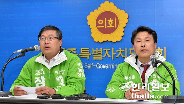 ![]() 국민의당 장성철·오수용 후보는 11일 제주도의회 도민의방에서 공동기자회견을 열고 국민의당 후보를 전략적으로 선택해야 한다고 밝히고 있다. 강경민 기자 국민의당 장성철·오수용 후보는 11일 제주도의회 도민의방에서 공동기자회견을 열었고 "더불어민주당 후보로는 새누리당의 승리를 막을 수 없다"고 밝혔다. 이들은 "국민의당 녹색바람이 전국을 강타하고 있는 이유는 더불어민주당의 무능과 무책임, 비전 없는 정치공학적인 낡은 선거전략의 재현 때문"이라며 "새누리당 후보들의 당선을 막기 위해서는 새로운 대안인 국민의당 후보를 전략적으로 선택해야 한다"고 주장했다. 이들은 "제주시 갑·을 더불어민주당 후보는 이번 선거에서 새누리당 후보를 이길 수 없다"면서 "국민의당 후보에 표를 몰아주기를 호소한다"며 "그래야 제주를 홀대하고 도민들을 무시하는 새누리당 정권을 심판하고 담대한 변화를 이끌어낼 수 있다"고 덧붙였다. 새누리당과 더불어민주당 지도부에 대해서도 비판을 이어갔다. 이들은 "새누리당과 더불어민주당 대표들은 전통적 지지기반이 흔들리자 각각 영남과 호남을 찾아 무릎을 꿇고 살려달라고 '읍소'했다"며 "그런데 왜 지난 제68주년 4·3희생자 추념식에선 도민들에게 한 마디의 사과도 없이 당당했느냐"고 반문했다. 이들은 "양당은 제주를 키우고 도민들의 삶의 질 향상을 위해 무슨 일을 해왔는지 확실히 밝히라"면서 "영·호남을 방문한 것처럼 도민들께 사죄하고 구태와 잘못을 되풀이하지 않겠다는 약속하라"고 요구했다. <저작권자 © 한라일보 (http://www.ihalla.com) 무단전재 및 수집·재배포 금지 > |