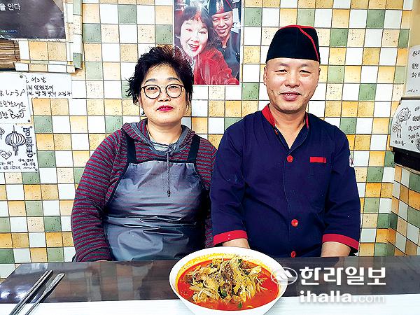 ![]() 특제육수에 푸짐한 해물이 담긴 해물짬뽕. 해물짬뽕·차돌짬뽕 대표메뉴 인기 30년 내공… 담백·시원한 맛 자부 특제육수에 신선한 재료 '깊은 맛' 중국집에 가면 행복한 고민이 시작된다. 짜장을 먹을 지, 짬뽕을 먹을지. 하지만 제주시 삼도2동에 위치한 천금반점에 가게 된다면 '아묻따(아무것도 묻지도 않고 따지지도 않고)' 짬뽕을 선택하면 된다. 천금반점은 닭과 사골, 엄나무 등 다양한 한약재를 넣어 끓여낸 육수를 바탕으로 해물짬뽕과 차돌짬뽕을 대표메뉴로 두고 있다. 30년 경력을 가진 장영록(61) 사장이 직접 조리하는 뜨끈한 짬뽕이 추운 겨울 꽁꽁 언 속을 녹이기에 부족하지 않다. ![]() 천금반점을 운영하는 장영록(58·오른쪽)·장명화(53) 부부. 중국집의 생명은 '스피드'라는 말이 있듯 짬뽕 두 그릇이 나오기까지 5분이 채 걸리지 않았다. 속풀이 짬뽕이라는 간판과 새빨간 국물이 '얼큰하겠다' 또는 '맵겠다'는 오해도 잠시했지만 두 짬뽕의 국물은 맵지 않고 담백했다. ![]() 식당 안 벽면에는 방문객들이 남기고 간 응원메시지로 가득 차 있다. 차돌짬뽕은 화끈한 중화불맛이 살아있다. 해물짬뽕과 마찬가지로 특제육수를 바탕으로 차돌박이, 숙주 외에도 짬뽕에 들어가는 야채가 어우러졌다. 맛보는 순간 꽁꽁 얼었던 속이 풀리며 담백한 맛을 느낄 수 있다. 씹으면 씹을수록 고소한 차돌을 찾아 짬뽕을 먹는 재미가 있다. ![]() 화끈한 중화불맛이 살아있는 차돌짬뽕. 장 사장은 어린시절부터 한 화교가 운영하던 중국집에서 요리를 배우기 시작해 호텔 주방을 거쳐 천금반점을 운영해 요리경력이 총 30년이 넘는다. 그는 "속풀이 짬뽕을 크게 강조하고 있어 담백하고 시원한 맛을 위해 닭, 사골과 엄나무 등 한약재를 넣어 푹 끓여내 먹는 손님의 맛도 건강도 생각했다"고 밝혔다. 그는 이어 "고향이 원래 부산이라 '이자리에서 1년만 해야지'하고 음식점을 시작했는데 어느덧 15년이 넘게 이 자리를 지키게 됐다"며 "모방할 수 없는 손맛과 먹으면 행복해지는 그 국물맛을 오랫동안 지키고 싶다"고 소망했다. 천금반점은 제주시 북성로 7(삼도2동)에 위치해 있으며 영업시간은 오전 10시30분~오후 8시30분이고 월요일은 휴무다. 메뉴는 해물짬뽕 1만원, 차돌짬뽕 8000원 등이다. 배달은 하지 않지만 포장을 요청하면 면과 국물을 따로 담아준다. <저작권자 © 한라일보 (http://www.ihalla.com) 무단전재 및 수집·재배포 금지 > |