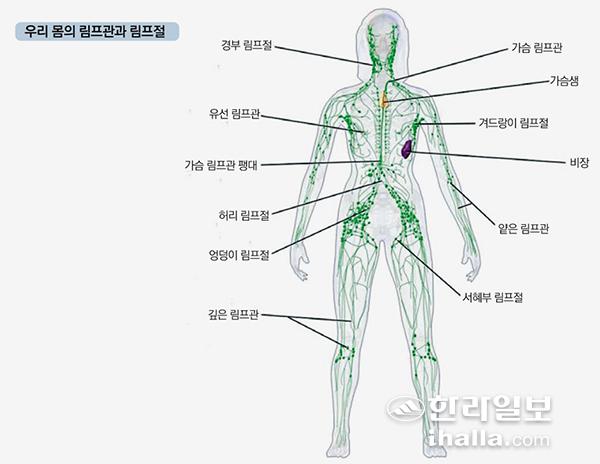 ![]() <우리 몸의 림프관과 림프절> 전세계적으로 암 발생률은 지속적으로 증가하고 있으나 최근 암 진단과 치료기술의 발달에 따라 암환자의 생존율은 향상되고 수명도 연장되고 있다. 이에 치료 이후 삶의 중요성에 대한 인식이 확산되면서 암 치료 과정 중에 생기는 불편한 점들과 치료 이후 발생할 수 있는 장애를 줄여 환자의 기능을 보존하고 삶의 질을 향상시키기 위한 재활치료의 필요성이 강조되고 있다. 특히 유방암이나 자궁경부암 같은 부인암, 전립선암 같은 비뇨기계 암에서 흔히 발생하는 림프부종은 암 완치 후에도 삶의 질을 저하시키는 하나의 원인이 되기 때문에 이를 현명하게 관리하는 것이 중요하다. 제주대학교병원 재활의학과 이소영 교수의 협조로 림프부종의 자가관리에 대해 알아본다. ![]() 이소영 교수 림프부종은 림프계 손상이나 기능 이상에 의해 림프액 수송능력이 저하돼 신체의 내외기관에 국소적 또는 전신적으로 발생되는 부종을 말한다. 일차성 부종은 특별한 원인 없이 선천적으로 혹은 원인 미상으로 발생하고 이차성 부종은 일차성보다 흔하게 발생되며, 감염, 수술, 종양, 방사선 조사, 외상 등 림프관의 방해나 막힘을 초래하는 여러가지 원인에 의해 발생한다. #림프부종의 증상 초기증상은 육안상으로 관찰이 어려운 상태이나 옷이 끼는 느낌, 무거운 느낌, 화끈거리거나 쑤시는 느낌이 들 수 있다. 어느 정도 시기가 지나면 육안상 부종이 관찰되며, 피부가 두꺼워지는 소견을 보인다. #림프부종의 진단법 진단법은 다음과 같다. (1)둘레 측정법=의심되는 팔과 다리를 줄자를 이용해 측정, 오차를 줄이기 위해 같은 시간, 같은 부위, 같은 자세로, 같은 사람이 측정하는 것이 유용하다. (2)부피 측정법=적외선, 레이저 등을 이용하여 부피를 측정한다. (3)다주파수 생체교류저항 분석=체지방과 수분의 함유 정도를 미세교류전류를 이용해 조직내의 저항을 측정, 진단하는 방법으로 조기진단에 유용하다. (4)림프관 핵의학 촬영(림프신티그라피)=방사선 의약품을 피하주사해 림프절과 림프관으로의 이동을 영상화, 확인하는 방법으로 가장 널리 사용되는 영상검사이다. # 림프부종의 치료 (1)비수술적 치료(복합림프물리치료)=비수술적 치료의 목표는 림프관의 기능을 향상시킴은 물론 경화된 피부조직을 유연화시키며 증가된 결체조직 감소와 피부위생을 증진시켜 감염을 막는 것이다. 도수림프 배출법, 압박치료, 부종감소운동, 피부관리도 구성된다. 도수림프 배출법은 부종환자들에게 가장 효과적인 치료법으로, 국소 부위에 정체돼 있는 림프액을 잔여 림프관을 통해 이동시키기 위한 목적으로 실시한다. 피부 밑에 있는 림프액의 이동을 촉진하기 위해서는 순서에 맞게, 천천히, 부드럽게 낮은 압력으로 반복해 시행한다. 압박치료는 부종이 있는 조직에 지속적인 압박을 가해 림프액이 원활히 흡수될 수 있도록 도와주는 치료법으로 압박붕대, 압박스타킹, 공기압박펌프 등이 사용된다. ![]() 압박치료에 사용되는 오토핏·압박 스타킹·붕대(왼쪽부터). 피부관리 및 일상생활 관리 역시 중요한데 우선 사지를 깨끗하고 건조하게 유지한다. 피부가 갈라지거나 튼 부위는 씻은 후 보습제를 사용하고, 부어있는 팔이나 다리에 주사나 혈압측정 등을 하지 않도록 하며 침이나 부황도 시술 받지 않는다. 부어있는 팔이나 다리에 외상(상처나 화상, 벌레 물림 등)을 조심하도록 한다. 햇빛에 오래 노출되거나, 뜨거운 팩, 사우나, 찜질방 등을 피한다. 조이는 속옷, 양말, 벨트 등의 액세서리를 착용하지 않는다. (2)수술적 치료=대상은 복합림프물리치료 같은 보존적 방법에 효과가 없는 경우를 비롯 반복되는 봉와직염, 림프관염 소견을 보이는 경우와 심한 부종으로 인한 외형상 변형, 통증, 혹은 뚜렷한 기능적 장애를 보이는 경우 등이다. 치료의 종류는 비생리학적 수술(수술적 축소술, 지방흡입술)과 생리학적 수술(림프관-정맥 문합술, 림프절 전이술)이 있다. # 합병증 림프부종환자에게서는 감염(단독, 연조직염, 림프관염 등)이 잘 발생하는데, 림프흐름과 박테리아의 제거에 장애가 있고, 순환되지 않은 림프액은 세균이 자라기 좋은 배지가 되기 때문이다. 림프부종은 감염을 일으키는 위험요소이며, 감염은 림프관의 손상을 일으킬 수 있으므로, 림프부종과 감염은 서로 악순환을 반복시킨다. 따라서 열감이나 부종 증가, 통증 등의 감염증상이 있으면 즉시 의사와 상의해 치료받도록 해야 한다. 이소영 교수는 "재활의학과에서는 정확한 의사의 진단과 물리치료사의 재활치료 및 교육을 통해 림프부종 환자의 관리를 위해 노력하고 있다"며 "증상이 의심되거나 발생한 경우 언제든지 재활의학과를 찾으면 된다"고 말했다. 이상민기자 [건강 Tip] “아쉬운 봄나들이, 제철 봄 식재료로 대신해 봐요” 1년 전만해도 요즘 같은 화창한 봄날이면 벚꽃축제나 유채꽃축제 등 다양한 볼거리와 먹거리를 찾아 가족들 혹은 지인들과 삼삼오오 봄나들이로 한창 분주했었던 기억이 생생하다. 하지만 2020년 봄은 코로나 바이러스감염증-19 (COVID-19)의 확산 방지를 위해 사회적 거리두기를 실천하다 