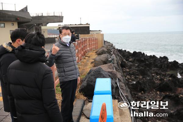 ![]() 제주시는 지난 29일 제주항 북쪽 해상에서 침몰한 32명민호 실종 선원을 찾기 위한 수색을 제주시 제주항 주변 해안으로 확대됐다. 안동우 제주시장은 1일 제주시 용담해안도로변을 찾아 실종선원을 찾기 위한 해안수색에 적극적으로 나서줄 것을 주문했다. ![]() 이후 궂은 날씨로 표류하다 30일 오전 3시 47분쯤 제주항 서방파제와 충돌한 뒤 좌초됐다. 사고 선박에는 선장 김모(55)씨를 비롯해 한국인 4명과 인도네시아인 3명 등 총 7명이 타고 있었으며 해경은 지난 31일 한국인 선원 1명의 시신을 수습했다. <저작권자 © 한라일보 (http://www.ihalla.com) 무단전재 및 수집·재배포 금지 > |
