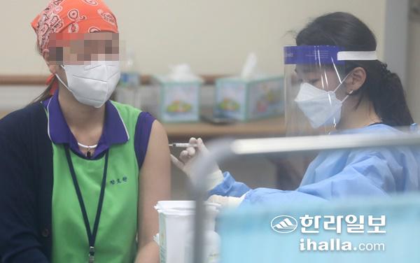 ![]() 전국적으로 첫 코로나19 백신 접종이 시작된 26일 오전 제주시 도련1동 사회복지법인 정효원에서 요양보호사 양은경 씨가 아스트라제네카 백신을 도내 최초로 접종받고 있다. 연합뉴스 제주에서 신종 코로나바이러스 감염증(코로나19) 아스트라제네카(AZ)백신 접종이 26일 오전 10시에 시작됐다. 제주도는 이날 제주시 도련1동에 있는 정효원에서 정효원 65세 미만 입소자 1명과 정효원 직원 69명 등 모두 70명에 대한 접종에 돌입했다. 백신 한 바이알(vial·약병)에 10명 접종분이 들어있어 이날 백신 접종 대상에서 제외된 정효원 직원 3명은 추후 제주시보건소에서 백신 접종을 하게 된다. 이날 접종은 제주시보건소 소속 의사 1명과 간호사 3명이 맡았다. 첫 백신 접종을 앞두고 이날 창문 건너 너머로 보이는 제주도 보건당국과 정효원 직원은 이른 오전부터 발열 체크와 백신 접종 준비 등으로 분주하게 움직였다. 정효원은 동일집단(코호트) 격리 상태로 외부인 출입이 철저하게 통제됐다. 접종은 의사가 예진을 보고 백신 대상자로 적합하다는 판정을 내리면 간호사가 백신을 접종하는 방식으로 진행됐다. 이날 제주 1호 접종자는 요양보호사 양은경(48) 씨다. 백신 접종 후 15∼30분 내 쇼크가 발생하는 등 만약에 사태를 대비해 소방서 구급 차량과 제주보건소 앰뷸런스도 대기하고 있다. 앞서 제주에서는 전날 제주항 4부두를 통해 3천900회분의 백신을 실은 1t 냉동 탑차가 도착한 뒤 도내 6개 보건소와 요양병원 및 요양시설 9곳에 나눠 전달됐다. 방역 당국은 요양병원과 요양시설 입소·종사자 3천193명을 1차 접종하고 남은 물량은 2차 접종에 사용할 예정이다.[연합뉴스] <저작권자 © 한라일보 (http://www.ihalla.com) 무단전재 및 수집·재배포 금지 > |