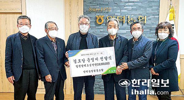 ![]() 안덕농협(조합장 유봉성)은 지난 5일 조합장실에서 20개 경로당에 올해 경로당 운영자금 1850만원을 전달했다. 전달식은 코로나19 방역지침에 따라 대한노인회 안덕분회 회장과 사계리대전·덕수리 노인회장이 참석한 가운데 이뤄졌고, 나머지 17곳 경로당에는 비대면 형식으로 전달했다. 안덕농협은 2016년부터 원로 조합원들의 복지 향상을 위해 매년 경로당 운영비를 지원하고 있다. 신진기업사 경로당에 후원금 전달 ![]() 신진기업은 용담1동 발전에 노력해왔을 뿐 아니라 평소에 어르신들의 복지증진 및 봉사활동 등 사회발전에 남다른 애정을 갖고 있으며, 건강한 지역사회에 보탬이 될 수 있도록 하기 위해 경로당 운영 후원금을 전달하게 됐다고 밝혔다. 노형로터리클럽 이웃에 냉장고 기부 ![]() 제주노형로터리클럽은 지난해에 밥솥, 제습기등 가전제품 300만원 상당을 지원한 데 이어 올해 설에는 백미 10㎏ 30포를 기탁한 바 있다. 한림공업고등학교총동창회 장학금 전달 ![]() 오정희씨 제주대 학생에 장학금 ![]() 중문미리내김밥 착한가게 동참 ![]() 동홍새마을금고 동홍초에 발전기금 ![]() <저작권자 © 한라일보 (http://www.ihalla.com) 무단전재 및 수집·재배포 금지 > |