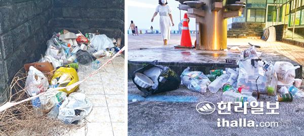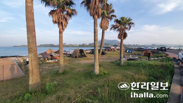 ![]() 20일 오후 제주시 구좌읍 하도해수욕장 인근에 텐트들이 들어서 있다. 코로나 확산 우려에도 제주를 찾는 관광객이 꾸준히 늘고 있는 가운데 해수욕장 인근 불법 주차 및 캠핑으로 불편이 야기되고 있다는 지적이다. 20일 오후 하도해수욕장 인근 해변 모래사장 및 풀숲에 캠핑 텐트 십수여대가 들어서 있었다. 이들은 대부분 고기를 굽는 등 취사 행위를 하고 있었으며, 5인 이상 모여 있는 등 기본 방역 수칙도 지켜지지 않고 있었다. 구좌읍사무소에 따르면 하도해수욕장 내 캠핑행위는 할 수 없다. 아울러 길거리 주변 및 해수욕장 인근에는 마시던 플라스틱 컵, 과자 봉지 등 쓰레기들이 뒹굴고 있는 모습이 포착됐고, 이들 중 일부는 미상의 액체를 바다에 버리는 등의 행위를 하기도 했다. 이와 함께 이 인근을 찾은 방문객들이 길거리에 불법 주차를 하면서 통행 불편도 야기됐다. 어느 한 차량은 자전거 전용도로를 완전 틀어막아 자전거 이용객들이 도로 한가운데로 이동하는 모습도 확인됐다. ![]() 20일 저녁 제주시 구좌읍 김녕해수욕장 음수대와 화장실 인근에 쓰레기가 무단 투기돼 있다. 이처럼 불법행위가 기승을 부리고 있는 가운데, 행정에서 단속을 강화해야한다는 지적이 잇따르고 있다. 김녕 주민 A씨는 "여름철이 되면 많은 이들이 찾아와 먹고 놀다 쓰레기를 무단 투기하는 등 해수욕장 이용에 불편이 야기된다"며 "얌체족들 때문에 제주의 이미지가 망가지고 있다. 시외지역도 강력 단속에 나서야 한다"고 말했다. 구좌읍사무소 관계자는 "현장에 나가 안내는 드리고 있지만 사실상 강력 계도는 힘들다"며 "해수욕장이 개장되고 나면 해수욕장 관리 기준에 따라 민간안전요원 등을 배치해 관리에 나설 것"이라고 밝혔다. 한편, 안동우 제주시장은 해수욕장 개장에 앞서 야영 금지 구역 내 불법 텐트 설치 등 강력히 대응할 것을 주문했다. <저작권자 © 한라일보 (http://www.ihalla.com) 무단전재 및 수집·재배포 금지 > |