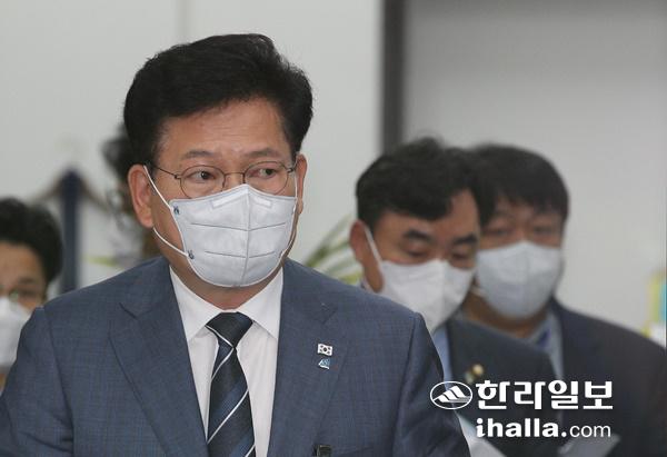 ![]() 더불어민주당 송영길 대표가 25일 서울 여의도 국회에서 열린 최고위원회의에 입장하고 있다. 연합뉴스 더불어민주당이 25일 우여곡절 끝에 '대선 레이스'의 출발 테이프를 끊었다. 최고위원회가 이날 당헌·당규대로 대선후보 경선을 진행하기로 함에 따라 민주당 차기 대선후보는 '대선 180일 전'인 9월 10일까지 선출된다. 송영길 대표는 최고위 후 취재진과 만나 "이상민 중앙선관위원장이 임명됐으니 선관위 회의를 열어 다음 주부터 경선 일정이 공식적으로 시작되도록 뒷받침하겠다"고 밝혔다. 강훈식 공동단장을 필두로 한 대선경선기획단도 곧장 채비에 들어갔다. 기획단은 경선 기간을 약 75일로 잡고 내주 예비후보 등록을 받은 뒤 7월 초중순까지 컷오프(예비경선)를 치르는 시간표를 짜 둔 상태다. 고용진 수석대변인은 최고위 후 브리핑에서 "9월 5일까지 본경선을 마무리하고, 과반 득표자가 없으면 9월 10일을 마지노선으로 잡고 (최종 후보자를) 정할 것"이라고 밝혔다. 구체적인 시간표가 나오면서 당내 대권주자들의 발걸음도 빨라질 전망이다. 현재까지 당내 대권주자는 이재명 경기지사, 이낙연 전 당 대표, 정세균 전 국무총리, 추미애 전 법무부 장관, 박용진·이광재·김두관 의원, 최문순 강원지사, 양승조 충남지사 등 총 9명이다. 1차 관문은 이르면 내달 초로 예상되는 컷오프다. 경선 룰에 따라 6명만 컷오프 문턱을 넘을 수 있다.' 다만 경선연기를 주장해 온 일부 주자들은 최고위 결정에 반발, '집단행동' 기류까지 보이고 있어 향후 경선 일정이 순탄치 않을 것이라는 관측도 나온다. 9명 주자 가운데 6명(이낙연 정세균 이광재 김두관 최문순 양승조)은 경선 연기를 주장해왔다. 이들 캠프를 중심으로 특별당규에 따라 당무위원회를 소집해 경선 연기 안건을 재논의해야 한다는 목소리가 나오고 있다. '이낙연 캠프'에 속한 한 의원은 통화에서 "큰일 날이다. 당이 대선 패배를 선택했다"며 "당무위 소집을 요구하는 방향으로 논의할 예정"이라고 말했다. '정세균 캠프'에 있는 의원은 "(뜻을 같이하는) 각 캠프의 상황을 봐야겠지만 당무위 소집 요구를 하든 다시 연명을 받든지 할 것"이라며 "지도부가 저렇게 밀어붙이면 당내 분란만 남는다"고 비판했다. 반면 원칙론을 펴며 경선 연기 불가를 외쳐온 주자들(이재명 추미애 박용진)은 지도부의 결정은 자연스러운 결과였다며 환영 입장을 보였다. 이 지사 측근인 한 의원은 "민주주의 절차에 따라 지도부가 다양한 의견을 듣고 용단을 내렸다"며 "작년에 당원 합의로 만들어 놓은 룰은 지켜야 하는 게 상식"이라고 말했다. 추 전 장관 측은 "당내 논란이 마무리된 만큼 앞으로 국민과 당원의 염원인 민주 정부 4기 수립과 정권 재창출을 위해 선의의 경쟁이 펼쳐지기를 기대한다"고 말했다. 이날 최고위 결정은 결국 만장일치로 이뤄졌지만 회의 도중 고성이 오가는 등 막판까지 의견대립이 치열했던 것으로 전해졌다. 전혜숙 최고위원은 최고위 의결을 앞두고 눈물까지 보이며 경선연기를 주장한 것으로 알려졌다. <저작권자 © 한라일보 (http://www.ihalla.com) 무단전재 및 수집·재배포 금지 > |