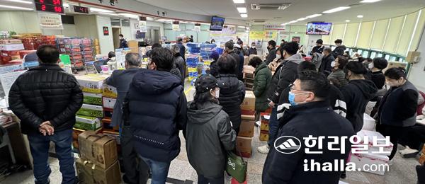 ![]() 24일 오전부터 제주시 연동 제주우편집중국에는 택배를 보내려는 방문객들로 북적였다. 이태윤기자 "제 택배도 받아주시면 안되나요" "항공편 시간을 맞춰야 하기 때문에 당일특급은 마감하겠습니다." 설 대목을 앞두고 제주지역 택배 대란이 현실화 되고 있다. 더욱이 최근 택배노조 파업 여파 등으로 택배물량이 우체국으로 쏠리면서 택배 지연 사태도 우려되고 있다. 24일 오전부터 제주시 연동 제주우편집중국에는 택배를 보내려는 방문객들로 북적였다. 택배 접수 창구 인근 복도 한켠에는 접수받은 택배물량이 수북이 쌓여져 있어 통행에 어려움도 있었다. 또 당일특송 소포 접수대에는 방문객 수십여명이 줄지어 대기하고 있었고, 우편집중국 현관부터 방문객들로 붐비는 등 그야말로 도떼기시장을 방불케 했다. 이날 방문객 택배 물품 대부분은 만감류 등 제주 특산품이었다. 이 같은 상황은 이날 도내 우체국에서 동시 다발적으로 이뤄졌다. 택배 노조 CJ대한통운 노조의 파업 여파로 택배물량이 폭증해 도내 택배 업체 대부분이 설 연휴 전 택배 접수를 조기 마감하면서 택배를 붙이려는 방문객의 발길이 우체국으로 향했기 때문이다. ![]() 24일 오전부터 제주시 연동 제주우편집중국에는 택배를 보내려는 방문객들로 북적였다. 이태윤기자 제주지방우정청에 확인결과 지난 17일부터 23일까지 7일간 제주지역 우체국을 통해 접수된 택배 물량은 총 13만여개로 집계됐다. 이는 지난해 같은 기간과 비교하면 4만여개 가까이 늘어난 것으로, 하루 평균으로 따지면 2만여개에 가까운 택배가 접수되고 있는 등 평소보다 2~3배 가까이 증가했다. 이와 관련 우정청 관계자는 "월요일까지 접수된 택배는 배송 지연 가능성이 낮지만, 사실상 택배 접수가 마감되는 화요일에는 사전에 택배 지연 가능성에 대해 설명하고 접수를 받을 계획"이라고 말했다. <저작권자 © 한라일보 (http://www.ihalla.com) 무단전재 및 수집·재배포 금지 > |