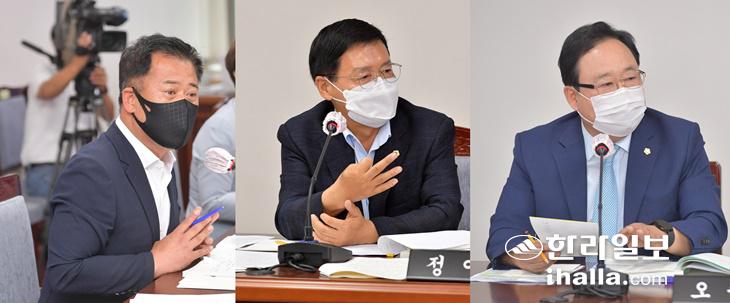 ![]() 15일 제주도의회 교육위원회에서 제주도교육청의 업무보고와 의원 질의가 이루어지고 있다. 사진=제주도의회 [한라일보] 제12대 제주도의회 교육위원회는 8년 만에 교육수장이 바뀐 제주도교육청의 첫 업무보고 자리에서 기대보다 우려의 목소리를 냈다. 일부 '선심성' 공약과 설익은 정책에 대한 의원들의 비판이 잇따랐고, 부실한 업무보고 내용이 지적되기도 했다. ■김창식 위원장 "학생 가정 스마트기기 보급률 낮은 거 맞나… 자칫 교부금 삭감 빌미" 15일 오후 2시30분부터 속개된 교육위원회 4차 회의에서 김창식 위원장(교육의원, 제주시 서부 선거구)은 도교육청의 올해 제1회 추경안에 161억원이 편성된 초·중학생 스마트기기 지원이 세밀한 접근을 통해 도출된 것인지 질의했다. 김 위원장은 "도교육청에서 제주지역 가정 내 컴퓨터 보유율이 59%로 전국 평균 74%보다 낮다고 했는데, 이 같은 비율이 학생이 있는 학부모 가정을 대상으로 한 것인지, 아니면 도내 모든 가정을 대상으로 한 조사에서 나온 것인지 알 수가 없다"며 "더욱이 왜 초등학교 3학년엔 태블릿PC이고, 중학생엔 노트북인지. 그에 맞는 디지털 역량 강화 프로그램은 무엇인지도 나와 있지 않다. 교육 목적을 세우고 기자재를 구입해야지, 기자재를 먼저 사서 그 뒤에 교육 내용을 만들겠다는 것인가"라며 "교육정책을 결정할 땐 올바르게 집행되고, 학생 교육에 꼭 필요한 것인지 생각해야 한다. 다시 한번 이 정책에 대해 재고해달라"고 했다. 특히 김 위원장은 최근 재정당국이 지방교육재정교부금을 줄여 대학 예산으로 활용하겠다는 계획을 언급하면서 "왜 그런 빌미를 제공하는가"라며 도교육청의 스마트기기 보급 계획이 자칫 남아도는 교육재정으로 타당성이 부족한 공약을 이행한다는 곱지 않은 시선을 받을 수 있다는 점을 꼬집었다. 이와 관련 도교육청은 학생이 있는 각 가정의 PC 보유 현황에 대한 별도의 조사 자료는 없다는 답변을 내놨다. 고3 모든 학생에 대한 진로진학비 지원의 경우엔 앞뒤가 바뀐 공약 추진 과정이 드러났다. 도교육청은 이번 추경안에 2022년부터 시행하기 위해 16억8000만원을 편성한 상태이고 2026년까지 매년 16억~19억여원 규모를 지원한다는 계획을 세웠다. ■양홍식 의원 "고3 진로비 복지부 승인 사항… 두 달 소요되면 추경안 심사 문제 없나" ![]() 김창식 의원(왼쪽)과 양홍식 의원.사진=제주도의회 양홍식 의원(더불어민주당, 비례대표)은 해당 공약 내용이 "보건복지부 사회보장제도의 승인을 받아야 되는 것 아닌가"라고 물었고, 이에 도교육청은 지난 6월 29일 보건복지부에 관련 승인을 받기 위한 자료를 보냈다고 밝혔다. 사회보장제도 승인까지 두 달 정도 소요되는 것과 관련해 양 의원은 "만일 승인이 안 되면 예산 편성이 안 된다는 것을 알고 있나"라며 "그런 부분에 대해 각별히 신경을 써달라"고 주문했다. 신제주권 여중·고 신설 또는 전환, 예술·체육학교 신설 또는 전환 등 학교 설립을 둘러싼 지적도 이어졌다. 김대진 의원(더불어민주당, 서귀포시 동홍동 선거구)은 "학교 설립 공약이 있는데 어떤 재원으로 할 것인가. 한두 학교를 증설하는 게 아니어서 예산이 어디서 올지 모르겠다. 서부중학교도 지금까지 부지만 선정하지 않았나"라며 우려를 나타냈다. 이에 강애선 도교육청 행정국장은 "예산도 막대하고 기간도 소요되는 거여서 설립타당성 용역을 추진할 계획"이라고 답했다. 또한 강동우 의원(교육의원, 제주시 동부 선거구)은 "학교 신설은 변수가 많다"며 "첨단단지 초등학교 신설 등 처음부터 계획을 잘 해서 도민들과의 약속을 지킬 수 있도록 진행해달라"고 당부했다. ■고의숙 의원 "공약 추진계획 구체화된 게 없어… 곧 추경안 심사 앞뒀는데 자괴감" 고의숙 의원(교육의원, 제주시 중부 선거구)은 예술고와 체육중·고 설립, 스마트기기 지원, 고 3진로진학비 등 공약 추진과 관련한 업무보고 내용이 허술하다는 점을 짚었다. 고 의원은 "공약사항들이 업무보고 자료 맨 앞에 나와있는데, 세부적으로 들어가면 구체화된 게 없다"며 "이미 학교체육관 무료 개방 같은 경우엔 공약이 수정되거나 전환되어야 할 상황이다. 적어도 공약이 주요 업무보고로 올라올 땐 분석이 되고 세부적인 내용이 나와야 한다. 스마트기기, 고3 진로진학비 등 향후 5년간 지속적으로 지원한다고 하는데, 이런 계획들이 분석 자료 없이 업무보고 자료에 올라있다. 한번 정책 결정이 이뤄지면 되돌릴 수 없는 경우가 많다. 정책, 제도를 만드는 기관에서는 신중해야 한다. 당장 다음 주부터 추경안 심사가 이뤄지는데, 이런 상태에서 예산을 살펴봐야 하는지 자괴감이 앞선다"고 했다. 이에 대해 오순문 부교육감이 "그동안 인수위원회 중심으로 공약 추진 계획을 검토했고, 7월 1일 교육감 취임 이후부터 교육청이 맡으면서 시일이 촉박했다는 변명 아닌 변명을 드리겠다. 8월 말까지는 치밀한 세부 추진 계획을 만들어 보고하겠다"고 답했다. 그러자 고 의원은 "그러면 8월 말까지는 추경안 심사를 안해도 되겠느냐"고 반문하며 "정부에서 지방교육재정교부금을 삭감하겠다는 마당에 우려의 말씀을 드린다. 다음