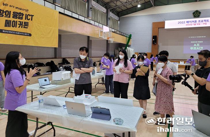 ![]() [한라일보]제주여자고등학교는 지난 16일부터 19일까지 3일간 학교 과학관과 체육관에서 창의 융합 ICT 메이커톤 프로젝트 활동을 실시했다. 이번 행사는 과학중점학교 특색 활동 중 하나로 (주)휴몬랩의 도움을 받아 2019년부터 꾸준하게 실시되고 있다. 특히 최근에는 다른 학교에서도 벤치마킹을 통해 메이커톤 프로젝트 활동을 하고 있다. 메이커톤이란 만든다는 것(Make)과 마라톤(Marathon)을 합친 합성어로, 메이커들이 팀을 이뤄 일정 기간에 아이디어부터 제작까지 하는 활동을 일컫는다. ![]() 올해는 4회째 행사로 '메이커 코딩을 활용한 다양한 생활 속의 아이디어를 구체화하여 제안하기'라는 주제로 1부와 2부로 나눠 실시됐다. 첫날(16일) 1부에서는 사전 교육이 실시됐는데 ▷피지컬 컴퓨팅 ▷3D프린팅 ▷앱 인벤터 제작 실습 ▷AI / IoT 실습 프로그램 관련 교육이 심도 있게 진행됐다. 2부는 18, 19일 팀별로 주제에 대한 아이디어 회의를 하고 주제에 부합하는 메이커 코딩 결과물을 제작하고 비즈니스 모델 캔버스를 제작해 모의 투자박람회에서 제품을 설명하고 시연하는 활동으로 구성됐다. ![]() 생활 속의 아이디어를 구체화해 제안하기라는 주제에 맞게 올해는 시각 장애인을 위한 간판을 읽어주는 앱을 비롯 잔반통 이물질 분리 로봇, 조도 센서를 이용해 파라솔이 움직이는 해바라기 파라솔, 점자 블록을 보완한 장애물 인식 센서, 노약자와 장애인을 위한 다기능 엘리베이터, 블루투스 기능을 갖춘 오르골 등 창의적인 아이디어가 돋보이는 다양한 제품들이 발표됐다. 뿐만아니라 짧은 시간에 아이디어를 내 작품을 완성하는 데 어려움이 있었지만 성과물의 아이디어와 완성도가 높고 참가한 학생들 모두 만족도가 매우 높았던 행사였다고 학교측은 설명했다. 아울러 코로나 확진자가 다시 급증함에 따라 체육관에서 50명 학생으로만 제한을 두고 방역 지침을 철저하게 지키면서 안전하게 행사를 운영했다. ![]() 행사에 참여한 2학년 학생은 "행사에 참여하기 전까지 코딩이나 앱에 대한 지식이 전혀 없었는데 팀원들과 함께 교육받고 우리의 상상이 결과물로 나오는 시간이 너무 의미 있고 멋진 경험이었다"라고 소감을 말했다. 행사를 기획하고 진행한 학교 수리과학교육부 담당 교사는 "이 활동으로 인해 많은 학생이 프로그래밍 및 피지컬 컴퓨팅 활용 능력, 3D 프린터 모델링 및 프린팅 능력, 앱 제작 능력 및 아두이노를 다루는 능력을 습득할 뿐만 아니라 팀 활동을 통해 창의적 문제 해결력과 커뮤니케이션 역량을 키울 수 있어 앞으로도 꾸준하게 활동을 이어갈 계획"이라고 말했다. <저작권자 © 한라일보 (http://www.ihalla.com) 무단전재 및 수집·재배포 금지 > |