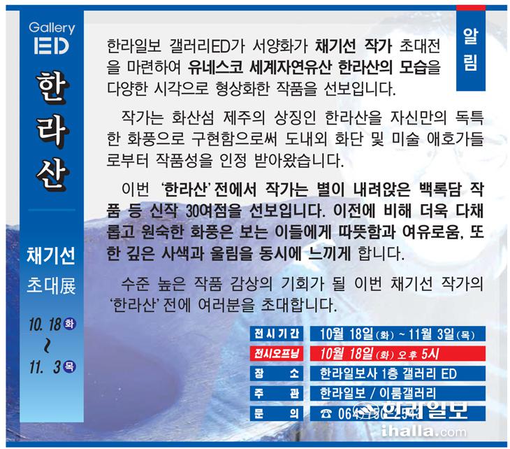 [알림] 갤러리ED 채기선 초대展 - 10월 18일(화) ~ 11월 3일(목)