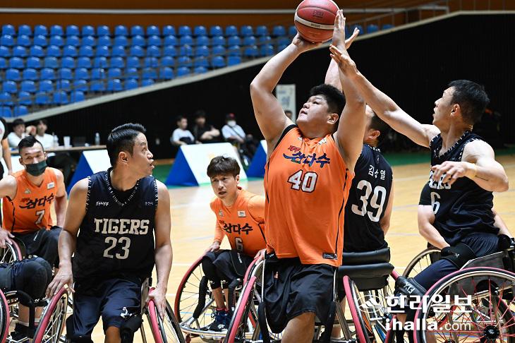 ![]() 31일 한라체육관에서 열린 제10회 제주특별자치도지사배 국제휠체어농구대회 제주삼다수와 춘천타이거즈의 1부 결승전에서 제주삼다수의 김도현이 춘천타이거즈의 이윤주 등의 수비를 뚫고 슛을 시도하고 있다. 강희만 기자 [한라일보] 제주삼다수휠체어농구단(이하 제주삼다수)이 제10회 제주특별자치도지사배 국제휠체어농구대회에서 디펜딩 챔피언 춘천타이거즈 휠체어농구단(이하 춘천타이거즈)에 석패하며 왕좌탈환에 실패했다. 제주삼다수는 31일 한라체육관에서 열린 춘천타이거즈와의 대회 1부 결승전에서 66-74(17-18, 16-22, 20-22, 13-12)로 패하면서 준우승에 만족해야 했다. 제주삼다수는 2쿼터에서 벌어진 점수 차를 좁히기 위해 안간힘을 썼으나 상대의 속공에 이은 골밑슛을 내주는가 하면 막판 슛 난조까지 겹치면서 승부의 추를 돌려놓지 못했다. 1쿼터는 양 팀 모두 접전끝에 18-17로 춘천타이거즈가 앞선 가운데 끝났다. 이날 승부처였던 2쿼터 들어 춘천타이거즈가 제주삼다수와 간격을 벌리기 시작했다. 이후 양 팀은 엎치락뒤치락하면서 근소한 점수차를 유지했다. 4쿼터 3분 여만에 60-62로 2점 차 까지 좁혔다. 하지만 막판 집중력을 발휘한 춘천타이거즈가 웃었다. 이로써 최근 양 팀의 맞대결은 춘천타이거즈가 3연승을 달리게 됐다. 지난 6일 끝난 제19회 우정사업본부장배 전국휠체어농구대회 결승전에서 춘천타이거즈가 승리하며 우승을 차지했다. 이어 지난 15일 벌어진 2023 KWBL휠체농구리그 1라운드에서도 춘천타이거즈가 승리했다. 3~4위전에선 대구광역시청이 태국 국가대표팀을 70-67로 제압하고 3위에 올랐다. 한편 앞서 열린 2부 결승전에서는 서귀포썬더휠스가 고양파이브휠스에 48-66으로 패하면서 준우승을 차지했다. <저작권자 © 한라일보 (http://www.ihalla.com) 무단전재 및 수집·재배포 금지 > |