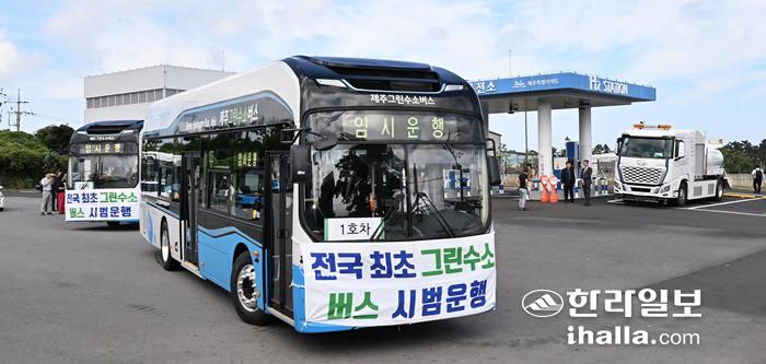 ![]() 주특별자치도는 이날 제주시 구좌읍 행원리 3MW 그린수소 생산시설과 조천읍 함덕리 그린수소 충전소 일대에서 그린수소를 활용한 수소버스 시범 운영 행사를 열었다. 이상국기자 [한라일보] 제주에서 '그린수소'를 연료로 달리는 버스가 4일 시운전에 돌입했다. 탄소 배출이 없는 온전한 그린수소를 연료로 버스를 충전하고 운행하는 사례는 제주가 전국 최초다. 제주특별자치도는 이날 제주시 구좌읍 행원리 3MW 그린수소 생산시설과 조천읍 함덕리 그린수소 충전소 일대에서 그린수소를 활용한 수소버스 시범 운영 행사를 열었다. 행사에는 오영훈 제주도지사를 비롯해 김경학 제주도의회 의장, 김한규 국회의원, 지역 주민 등이 참석했다. 일반 수소를 활용한 충전 인프라를 갖춘 경우 타 지역 사례가 있었지만, 온전히 그린수소를 연료로 활용한 버스 운행은 제주가 전국 최초다. 이날 오전 진행된 시범 운영 행사는 행원리 일대 그린수소 생산시설에서 시작됐다. 이 생산시설은 4778㎡ 부지 규모로, 222억 원의 사업비를 투입해 구축됐다. 하루 그린수소 최대 1t을 생산할 수 있다. 그린수소 생산시설에서의 사업 설명 및 생산 시연에 이어, 이곳에서 생산된 수소가 튜브 트레일러 차량을 통해 함덕리 그린수소 충전소로 이동했다. 함덕리의 그린수소 충전소는 4763㎡의 부지 규모로, 60억 원을 들여 구축됐다. 시간당 수소버스(25㎏ 기준) 4대, 수소 승용차(5㎏ 기준) 20대를 충전할 수 있는 설비를 갖췄다. 충전은 LPG충전소와 같이 차량에 직접 수소를 공급하는 방식으로 이뤄진다. ![]() 4일 시범운행에 들어간 그린수소 버스. 이상국 기자 도는 이번 시범 운행을 거쳐 해당 버스를 함덕~수목원 구간 노선에 실제 투입할 계획이다. 현재 제주에는 수소버스는 총 9대가 마련됐으며, 향후 추가 도입이 계획됐다. 오영훈 지사는 이날 지역주민들과 함께 그린수소 버스에 시승했다. 오 지사는 "지난해 취임 후 글로벌 그린수소 허브 구축 목표를 발표했을 때 많은 분들이 '글쎄요'라면서 물음표를 달았지만, 우리는 비전을 새롭게 정하고 지금까지 달려왔다"며 "그 과정에서 3.3메가와트(㎿) 실증에 이어 12.5메가와트(㎿) 실증, 최근 30메가와트(㎿) 실증사업까지 선정되는 쾌거를 이룬 것은 비전을 올바르게 설정하면 가능하다는 것을 보여준다"고 말했다. 이어 "현재 도내 재생에너지 비율은 출력제어로 19.2%에 불과하지만, 그린수소 생산으로 재생에너지 발전비율은 비약적으로 높아지는 계기를 마련한 만큼 에너지 전체를 그린수소와 재생에너지로 만들어 나가는 탄소 제로시대를 제주도가 선도해 나가겠다"고 강조했다. <저작권자 © 한라일보 (http://www.ihalla.com) 무단전재 및 수집·재배포 금지 > |