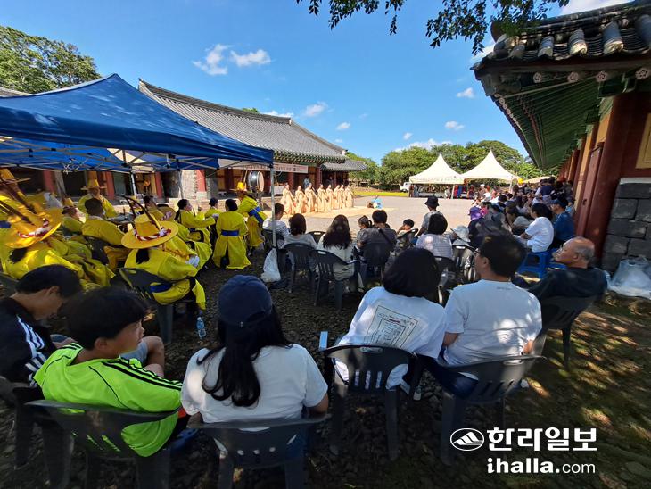 ![]() 11월 3~5일… "삼읍 후손들 위한 보은·화합의 한마당" 성읍마을 중심 옛 정의현 성산 시흥~법환동 대상 확장 역사 재해석 목사행차·경로잔치·경연대회 볼거리 풍성 축제는 말 그대로 축(祝)이 동반된 큰 제사(祭)를 의미한다. 음악적 행위나 조직화된 일련의 이벤트가 동반된다. 보통 한 장소나 일정한 기간에 일어나며 사회적 활동, 음식, 의식들과 결부한다. 올해로 정의현성 이설 600주년을 기념해 성읍민속마을이 '600년의 역사 일천년의 미래'를 주제로 제29회 성읍민속마을 전통민속 재현축제를 연다. 특히 올해는 마을에서 벗어나 조선시대 정의현에 속했던 서귀포시 성산읍 시흥리를 시작으로 법환동에 이르기까지 축제의 범위를 확장한다. 당시 정의현의 중심지인 성읍민속마을은 제주 고유의 전통과 문화를 보전하며 이번 축제를 통해 과거와 현재, 그리고 미래를 함께 아우르는 새로운 1000년을 기약한다. ![]() 정의현성 이설 600주년을 맞아 11월 3~5일 성읍민속마을 일원에서 열리는 '제29회 성읍민속마을 전통민속 재현축제'는 탐라순력도에 기록된 정의현과 연관한 정의조점(旌義操點, 사진 왼쪽부터) 정의양로(旌義養老) 정의강사(旌義講射) 재현하는 프로그램으로 운영된다. (사)성읍민속마을보존회가 주최·주관한 제주 성읍마을 정의현감 행차가 지난 9일 서귀포시 표선면 성읍민속마을 일원에서 화려하게 펼쳐지며 주민과 관광객의 눈길을 사로잡았다. 행차를 마치고 도착한 객사터에서 펼쳐진 축하 민요공연을 지켜보는 주민과 관광객들. 한라일보 DB ▶600년 역사 되새기고 1000년 미래 내다보다=성읍1리마을회와 성읍민속마을보전회가 오는 11월 3일부터 5일까지 3일간 성읍민속마을 일원에서 '성읍 정의현성 600주년 축제-제29회 성읍민속마을 전통민속 재현축제'를 연다. 현감행차를 확대, 재해석한 목사행차를 비롯해 전통민속공연 및 도축문화를 재현하고 경연대회와 체험행사도 풍성하게 차려낸다. 축제 준비를 위해 그동안 마을 중심의 축제위원회 운영에서 올해는 정의현성 이설 600주년이라는 역사적 의미를 되새기며 '성읍 정의현성 600주년 축제 추진위원회'(명예회장 이종우 서귀포시장, 대회장 김철홍 성읍1리장)가 새롭게 꾸려졌다. 서귀포시를 비롯해 제주특별자치도 세계유산본부, 제주도관광협회, 한국예총제주도연합회, 서귀포시문화원, (사)제주올레 등의 관계자들이 행정 지원은 물론 추진 위원으로 적극 가담하고 있다. 지역구 의원 등 도의원 8명이 자문위원을 맡고 있으며, 표선면·성산읍·남원읍·대정읍·안덕면과 해당 지역의 이장협의회도 운영위원으로서의 활동에 나서고 있다. 그야말로 제주섬 전체가 들썩일 만큼 기존 축제보다 몸집을 불리고 축제 콘텐츠와 프로그램도 풍성해진다는 의미다. 김철홍 대회장은 "정의현성 이설 600주년을 기념해 현성 축조에 애써준 삼읍(제주목·정의현·대정현) 후손들을 위한 보은과 화합의 한마당을 제공하는 축제를 계획하고 있다"며 "이를 통해 정의현성의 역사적 의미와 가치를 재조명하고, 나아가 지역의 인적·물적 자원과 결합한 전통문화 관광자원으로 생산성 있는 문화관광축제로 승화, 지속가능한 축제로 더욱 발전시켜 나가겠다"고 했다. 그는 "예전 축성할 때, 떡이나 고기를 나눴던 풍습과 제주에서도 잔칫날 돼지를 잡는 풍습이 있는데, 이번 축제에서 이를 재현해 볼 생각"이라며 "마을 주민들이 축제 3일간 직접 돼지를 잡아서 삶고, 굽고, 전통음식인 고깃국을 끓여 먹는 이벤트를 계획하고 있다"고 했다. 이어 "목사 행차는 마을 입구부터 1.5㎞ 구간에서 이뤄질 예정으로 축제의 하이라이트가 될 것"이라고 강조했다. ![]() ▶'탐라순력도' 모습 그대로… 풍성해진 축제현장=올해 축제는 '탐라순력도'를 기반해 역사적 현장을 재현하는 데 초첨을 맞춘다. '탐라순력도'는 1702년 제주목사 이형상이 실시한 가을 순력행차와 제주도에서 치른 다양한 행사를 묘사한 기록 화첩이다. 이번 축제에서는 탐라순력도에 기록된 정의현과 연관한 ▷정의조점(旌義操點, 1702년(숙종 28) 11월 초 2일 이형상 목사 일행이 수산을 지나 정의현에 도착하는 행렬을 자세히 그린 그림) ▷정의양로(旌義養老, 1702년 11월 초 3일 정의현성에서 치러진 노인잔치 광경) ![]() 정의현성 이설 600주년을 맞아 11월 3~5일 성읍민속마을 일원에서 열리는 '제29회 성읍민속마을 전통민속 재현축제'는 탐라순력도에 기록된 정의현과 연관한 정의조점(旌義操點, 사진 왼쪽부터) 정의양로(旌義養老) 정의강사(旌義講射) 재현하는 프로그램으로 운영된다. '정의조점'은 제주목사가 정의현을 방문하는 순력 행차를 재현하는 내용으로 오영훈 제주도지사가 제주목사로 정의현을 방문하면, 이종우 서귀포시장이 정의현감의 자격으로 이를 맞이하는 모습으로 연출된다. 마을 주민으로 구성된 취타대의 흥겨운 풍악과 함께 마을 곳곳을 경유, 거리퍼레이드 형식으로 풀어내며 볼거리와 즐길 거리가 많다. 2022년 서귀포시 칠십리축제에서 최우수상을 받은 데다 올해 탐라문화제에 출전해 좋은 성적을 거둔다는 것이 주민들의 포부다. '정의양로'는 노인잔치와 연계해 열리며 흑돼지 도