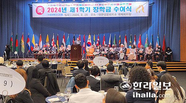 ![]() 부영그룹 이중근 회장이 설립한 우정교육문화재단(이사장 이중근)은 26일 국내 대학에 재학 중인 외국인 유학생들에게 장학금을 지급했다고 밝혔다. 이 회장이 직접 사재를 출연해 설립한 우정교육문화재단은 이날 '2024년 1학기 외국인 장학금 수여식'을 갖고 외국인 유학생 29개국 83명에게 장학금 약 3억 3000만원을 지급했다. 우정교육문화재단은 교육장학사업을 목표로 2008년 설립돼 2010년부터 해외유학생들에게 매년 두 차례 장학금을 지급해오고 있으며, 2013년부터는 대상 국가와 수혜 학생을 대폭 늘리고 장학금 액수도 1인당 연 800만원으로 증액해 지급하고 있다. 현재까지 유학생 2449명이 약 96억원에 이르는 장학금 혜택을 받았다. 이날 장학생으로 선발된 라오스 출신 싸이싸나 빤야봉(서울대학교 국제농업기술학과 박사과정)은 "경제적·심리적으로 많은 지원과 응원을 해주시는 이중근 이사장님을 비롯해 부영그룹 우정교육문화재단에 진심으로 감사드린다"고 말했다. 이세중 전 이사장은 이날 이중근 회장(현 이사장)을 대신해 "오늘 이 장학금이 여러분들의 꿈을 실현하는데 도움이 되길 바라며, 훗날 여러분의 모국의 발전과 지구촌 전체의 발전에 기여하길 바란다. 우정교육문화재단도 한국과 세계를 잇는 가교 역할을 충실히 하겠다"고 말했다. 한편 이 회장이 설립한 부영그룹은 교육 사회공헌에 앞장서고 있다. 부영그룹은 전국 100여 곳이 넘는 초·중·고에 이 회장의 아호를 딴 기숙사, '우정(宇庭)학사'를 설립해 기증하고 있으며, 국내 유수의 대학들에도 학생들이 필요한 교육시설을 건립해 기부하고 있다. <저작권자 © 한라일보 (http://www.ihalla.com) 무단전재 및 수집·재배포 금지 > |