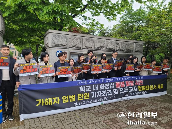 ![]() 제주교사노동조합과 중등교사노동조합은 29일 제주지방법원앞에서 학교 내 화장실 불법촬영 사건 가해자 엄벌 탄원을 위한 기자회견을 개최했다. 강다혜기자 [한라일보] 지난해 도내 모 고교에서 벌어진 불법촬영 사건과 관련해 피해 교사를 포함한 교사들이 가해자에 대한 엄벌을 촉구했다. 피해자는 "평생을 유포의 불안함 속에서 살아야 한다"며 고통을 호소했다. 제주교사노동조합과 중등교사노동조합은 29일 제주지방법원앞에서 학교 내 화장실 불법촬영 사건 가해자 엄벌 탄원을 위한 기자회견을 개최했다. 이날 기자회견에는 전국의 교사노동조합 위원장과 집행부들이 참석했으며 피해 교사의 탄원서에 대한 대독도 이뤄졌다. 피해 교사는 탄원서를 통해 "2023년 10월 18일 이후 삶이 망가졌다"며 "믿었던 제자의 불법촬영 사건으로 인해 교단에 돌아갈 수가 없게 됐다"고 말했다. 이어 "가해자는 갑티슈의 각도가 얼굴부터 다리까지 전신이 다 나오도록 찍는 지능범"이라며 "화장실 여러 칸을 사전에 잠가두고 휴대전화가 있는 곳에서 볼일을 보도록 계획해 범행했다"고 폭로했다. 그러면서 "교단에 돌아가더라도 자리에 앉아 있는 학생이 인터넷으로 제가 바지를 벗는 모습을 보지 않았는지 두려움에 떨며 지내야 한다"고 호소했다. 피해 교사의 법률 대리인은 "가해자가 사건 당시 학생이었다는 점을 감안하더라도, 어린 피해자들이 여전히 고통받고 있다는 점을 고려해 피해자들이 일상으로 돌아갈 수 있도록 가해자에게 법의 엄정함을 보여 달라"고 재판부에 촉구했다. 교사노조 측은 "현재 가해자는 장기 8년, 단기 4년의 징역형을 구형받고 선고를 기다리고 있으며, 뒤늦게 반성문을 제출하고 선처를 호소하고 있다"며 "하지만 정작피해자의 피해 회복을 위한 어떠한 조치도 취하지 않고 있으며, 피해자는 아직도 고통에 찬 하루하루를 보내고 있다"고 지적했다. 그러면서 제주도교육청에 대해 "교사 대상 성범죄가 반복되는 현실에서, 교사에게 교육청이라는 든든한 울타리가 있다는 사실을 알 수 있도록 선생님의 변호사 비용을 온전히 감당해 달라"고 요구했다. ■기사제보 ▷카카오톡 : '한라일보' 또는 '한라일보 뉴스'를 검색해 채널 추가 ▷전화 : 064-750-2200 ▷문자 : 010-3337-2531 ▷이메일 : hl@ihalla.com ▶한라일보 다음채널 구독 바로가기 <저작권자 © 한라일보 (http://www.ihalla.com) 무단전재 및 수집·재배포 금지 > |