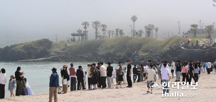 23일 제주시 함덕해수욕장에 해무가 내려 앉아 아름다운 운치를 자아내고 있다. 이상국기자
