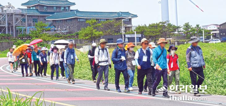 무더위 속 올레길 행렬