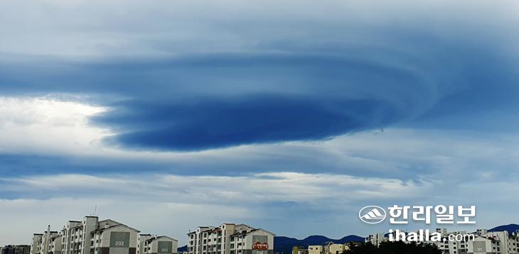 제주 전역에 장맛비가 쏟아진 10일 제주시 상공에 렌즈구름이 만들어져 시선을 사로잡고 있다. 이상국기자