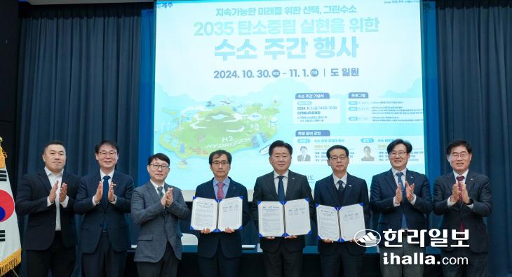 ![]() 제주특별자치도와 국토교통과학기술진흥원, 한국에너지기술연구원은 지난달 31일 제주문학관에서 RE100 기반 수소시범단지 조성을 위한 업무협약을 체결했다. 제주자치도 제공 [한라일보] 제주에 2026년까지 RE100을 기반으로 한 수소시범단지가 조성된다. RE100은 필요 전력 모두를 100% 재생에너지로 사용하는 것을 말한다. 1일 제주특별자치도에 따르면 제주도와 국토교통과학기술진흥원, 한국에너지기술연구원은 지난달 31일 제주문학관에서 업무협약을 체결했다. RE100 기반의 수소 시범단지 인프라와 기술 개발의 실증을 위해서다. 국토교통부가 주도하는 이번 국책 실증사업에는 2026년까지 모두 370억원이 투입된다. 목표는 순수 국내 기술로 RE100을 구현하는 데 있다. 제주의 풍부한 재생에너지 자원을 바탕으로 국토교통과학기술진흥원, 한국에너지기술연구원의 기술력을 더하면서다. 제주도는 풍력, 태양광을 활용해 그린수소를 생산하고 이를 통해 전력 공급 체계를 갖추게 된다. 2026년까지 1㎿(메가와트) 수전해설비와 수소저장시설(800㎏), 연료전지(0.7㎿), 에너지저장장치(ESS, 8㎿h)가 설치된다. 제주에너지공사 행원풍력발전단지의 전력을 활용해 생산된 그린수소는 연료전지와 ESS를 통해 인근 단지와 건물에 친환경 에너지를 공급한다. 남는 전력이 발생할 경우 이를 수소로 저장해 함덕 그린수소 충전소에 공급하는 시스템도 구축된다. 이같은 체계가 갖춰지면 제주형 RE100 사업 모델을 창출하고 수소경제 활성화를 앞당길 수 있을 것으로 제주도는 보고 있다. 오영훈 제주지사는 이날 업무 협약식에서 "수소시범단지 실증사업은 재생에너지 변동성을 극복하고 안정적인 RE100을 구현하기 위한 핵심 기반이 될 것"이라며 "에너지 신산업 실증의 최적지인 제주도가 대한민국 에너지 대전환을 선도하겠다"고 했다. 이창근 한국에너지기술연구원장은 "이번 협약은 제주도 뿐만 아니라 국가 탄소중립 달성을 위한 중요한 첫걸음"이라고 했고, 권진섭 국토교통과학기술진흥원 부원장은 "RE100 구현을 위한 전문가들의 지식과 경험을 결집하는 계기가 되길 바란다"고 말했다. ■기사제보 ▷카카오톡 : '한라일보' 또는 '한라일보 뉴스'를 검색해 채널 추가 ▷전화 : 064-750-2200 ▷문자 : 010-3337-2531 ▷이메일 : hl@ihalla.com ▶한라일보 유튜브 구독 바로가기 <저작권자 © 한라일보 (http://www.ihalla.com) 무단전재 및 수집·재배포 금지 > |