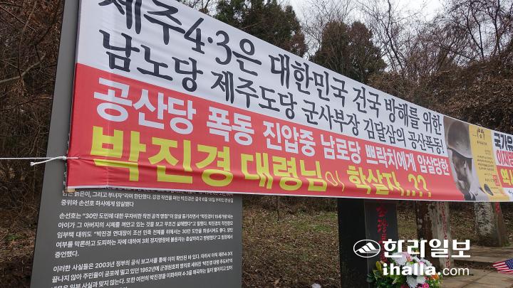 ![]() 31일 제주시 어승생 한울누리공원 인근 도로변에 있는 박진경 추도비와 진실의비 바로 앞에 4·3 왜곡 현수막이 게재됐다. 양유리기자 [한라일보] 제주4·3 당시 강경진압을 주도했던 고(故) 박진경 대령의 추도비 ‘바로 세운 진실의 비’가 세워졌으나 이를 모두 가리는 4·3왜곡 현수막이 보름이 채 되지 않은 시점에 설치된 것으로 드러났다. 31일 오전 제주시 어승생 한울누리공원 인근 도로변에 설치된 박진경 추도비 앞에는 ‘역사 왜곡 안내판 제거하라’라는 문구가 담긴 현수막이 게재됐다. 현수막에는 또 “국가유공자 지정했다가 취소한다고? 이재명·오영훈은 역사가 당신들 장난감인가”, “제주4·3은 대한민국 건국 방해를 위한 남로당 제주도당 군사부장 김달삼의 공산폭동” 등의 문구가 포함됐다. 해당 현수막은 내일로미래로당과 제주자유수호청년연합이 게재한 것으로 기간은 12월 29일부터 1월 12일이다. 특히 내일로미래로당은 추석 연휴 즈음 제주시 전역에 “4·3은 공산당 폭동으로 발생”이라며 왜곡 현수막을 게재해 논란을 산 바 있다. ![]() 지난 15일 박진경 대령 추도비 바로 옆에 ‘바로 세운 진실’ 안내판이 설치됐다. 강희만기자 ![]() 31일 제주시 어승생 한울누리공원 인근 도로변에 있는 박진경 추도비와 진실의비 바로 앞에 4·3 왜곡 현수막이 게재됐다. 양유리기자 안내판은 제주4·3사건 진상조사보고서 등을 토대로 기술됐으며 박 대령에 대해 “1948년 5월 6일 제주도에 와서 40일 남짓 강경한 진압 작전을 벌였고, 그 대가로 상관을 앞질러 대령으로 특진했다”며 “그 무렵 미군 비밀보고서에 '3000여 명이 체포됐다'고 기록될 정도로 박진경은 무리한 작전을 전개했다”고 서술했다. 그러나 진실의 비가 설치된 지 14일 만에 비석 내용을 절반 이상 가리는 왜곡 현수막이 게재된 것이다. 제주도는 해당 사실을 파악한 뒤 즉각 철거 가능 여부를 검토하는 중이다. 특히 행정안전부가 최근 혐오·비방성 표현을 담은 현수막을 줄이기 위한 ‘옥외광고물법 금지광고물 적용 가이드라인(이하 가이드라인)’을 마련, 지난달 18일부터 시행되고 있는 만큼 이번 사례에 영향을 미칠지 주목된다. 제주도 관계자는 “현재 옥외광고물 심의위원회를 구성해 빠른 시일 내에 철거 가능 여부를 논의할 예정”이라며 “해당 현수막이 옥외광고물법에 저촉되는 부분이 있는지, 가이드라인에 따른 철거 가능 여부 등을 종합해 법률 검토할 예정”이라고 설명했다. ■한라일보 기사제보 ▷카카오톡 : '한라일보' 또는 '한라일보 뉴스'를 검색해 채널 추가 ▷전화 : 064-750-2200 ▷문자 : 010-3337-2531 ▷이메일 : hl@ihalla.com ▶한라일보 유튜브 구독 바로가기 <저작권자 © 한라일보 (http://www.ihalla.com) 무단전재 및 수집·재배포 금지 > |