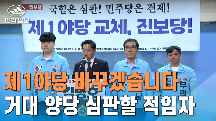 [한라일보] 진보당 김명호 제주특별자치도 지사 후보가 제9회 전국동시지방선거의 승리를 다짐하며 지지를 호소했습니다. 김 후보는 오늘 제주도 의회 도민 카페에서 기자회견을 열고, "기득권 양당 체제가 만든 일당 독식 구…