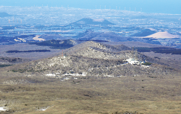 성진이, 위가 평평한 오름 [한라일보] 516도로를 따라 서귀포로 넘어가는 도중 제주마방목지를 관통하게 된다. 이 목장을 벗어날 즈음 왼쪽으로 정상에 여러 송신탑이 있는 오름을 보게 된다. 개오리오름이라고도 하고 견월악…
