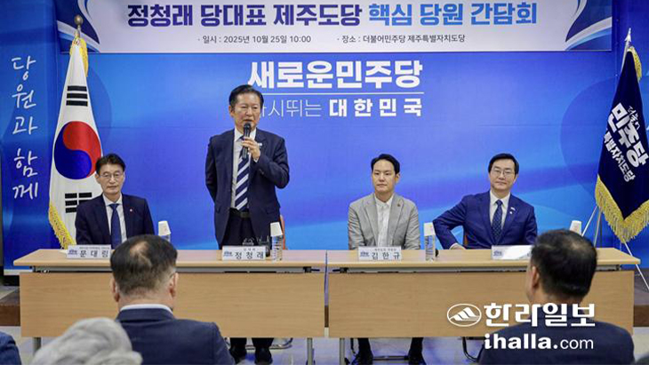 [한라일보] 정청래 더불어민주당 대표가 내년 지방선거와 관련해 "경선에 컷 오프 없이 누구나 참여할 수 있는 열린 경선을 진행하겠다"고 밝혔다. 정 대표는 25일 오전 10시 민주당 제주도당 당사에서 진행한 핵심 당원 간담회…