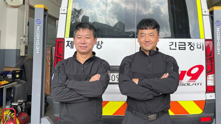 [119소방의 날] 화재 현장 뒤편 소방차 정비 전문 소방관들