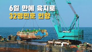 [영상] 제주항 서방파제 6일 만에 인양된 32명민호