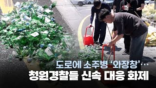 [영상] 도로에 소주병 '와장창'··· 제주도청 청원경찰들 신속 대응 화제
