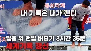 [영상] 맨발의 조승환 ‘얼음 위 맨발 버티기’ 3시간 35분으로 자신의 기록 또 깨며 세계기록 갱신