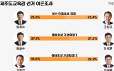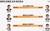제주도교육감 선거 여론조사 결과 보수 단일화 경쟁은 오차범위 내에서 초접전을 벌이는 반면 단일화 이후 이석문 예비후보와의 대결에서는 2명의 후보자 모두 우세한 것으로 확인됐다. 보수 단일후보는 오는 3일 결정될 예정…