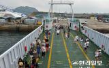 사람·차량 뒤엉킨 우도 도항선에서 차량 먼저 내린다