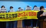 [한라일보] 지난 4일 건물 천장 330㎡가 무너져 내린 제주시 연동의 A 상가 상인회원들이 기지회견을 열고 피해 대책 TF 구성 등 사고 수습 대책 마련을 요구했다. A 상인회는 이날 제주도의회 도민카페에서 기자회견을 열고 '호소…